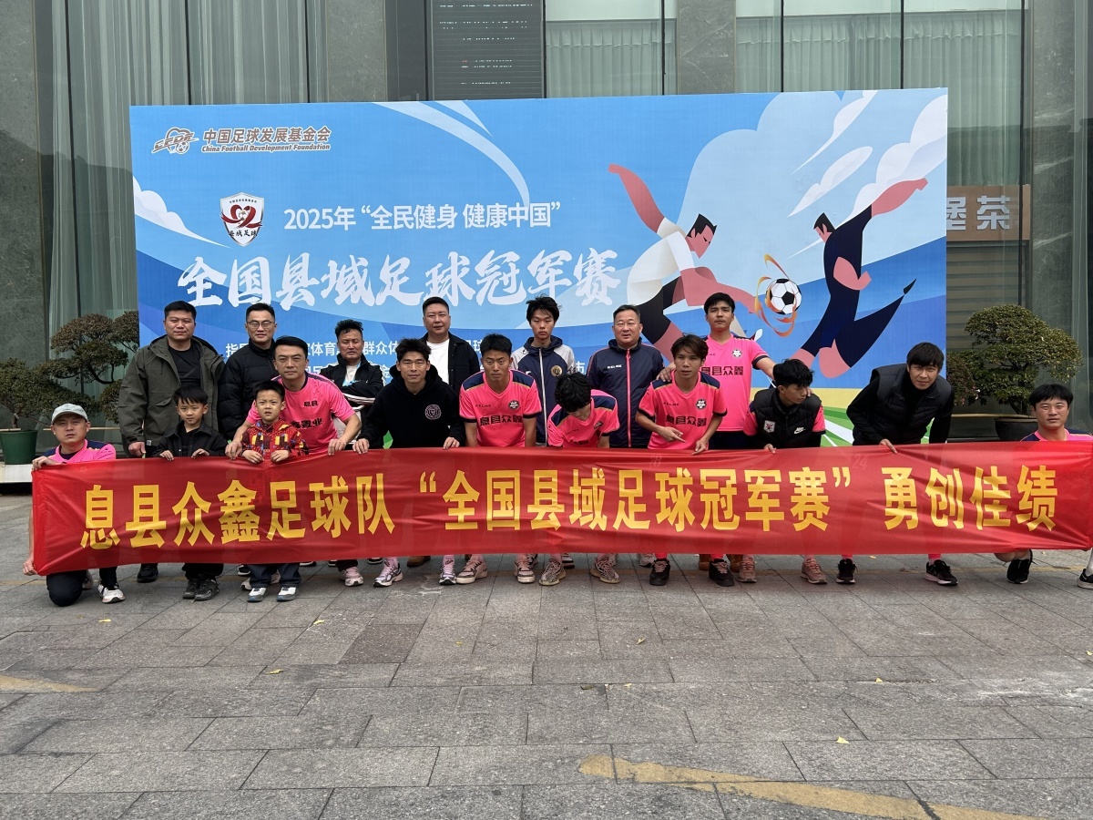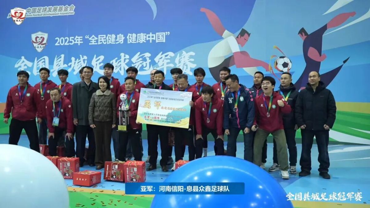 12月24日上午,在广西桂林举行2025年“全民健身健康中国”全国县域足球冠军赛落下帷幕。在河南信阳息县众鑫足球队对阵新疆兵团第八师石河子镇足球队的巅峰对决中,息县众鑫队员们拼尽全力驰骋赛场,最终虽以1:4憾负对手,斩获本次赛事亚军。