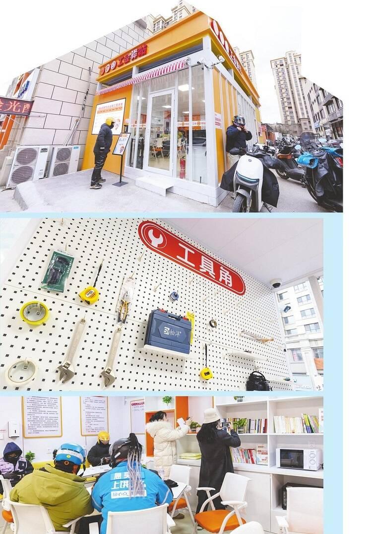 走进驿站,人性化设计随处可见:刷脸进门后,左手边是配有电源的吧台式桌椅,可满足临时性办公、充电需求;右手边设置工具角,中间区域的餐桌能容纳近20人同时就餐休息;往里走,书柜、橱柜、餐边柜整齐排列,饮水机、纸杯、微波炉、小冰箱等设备一应俱全。两侧的大玻璃窗让室内明亮通透,冬日里,社区联动辖区爱心商户提供的免费姜汤、爱心水果,更让暖意直达人心。“对于我们这个群体来说,有了驿站之后是真方便、真实用!”外卖员王琳说,驿站24小时开放,接单空隙能歇会儿,空调冬暖夏凉,渴了有热水、手机能充电,还有卫生间和维修工具,“有了这个临时落脚的地方,跑单都更有劲儿了。”