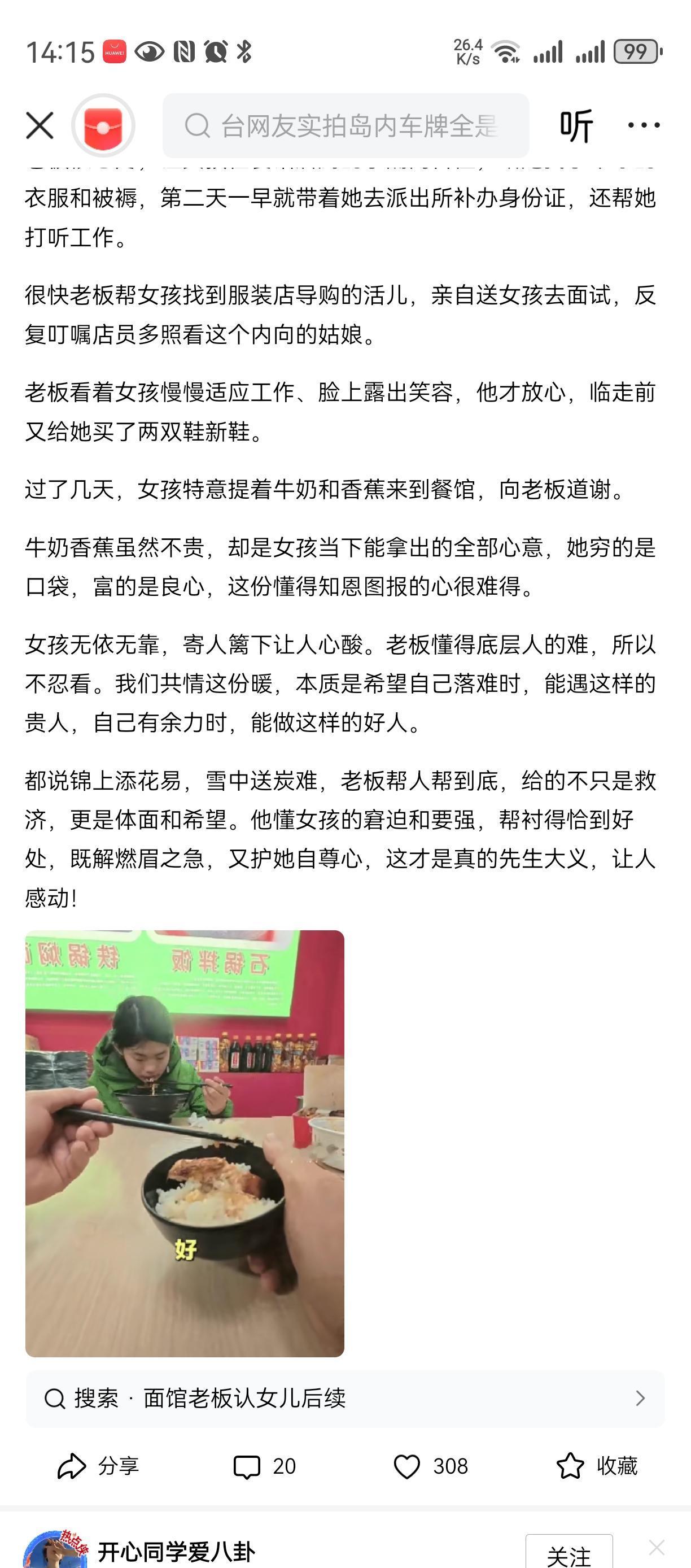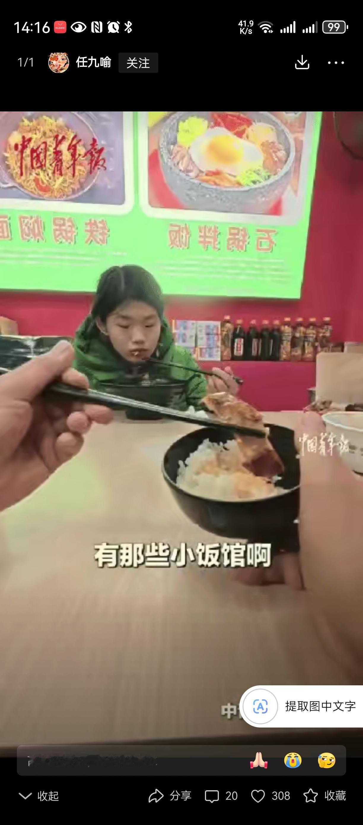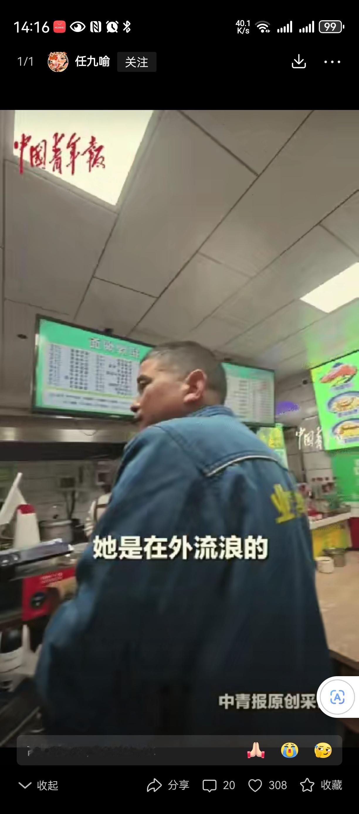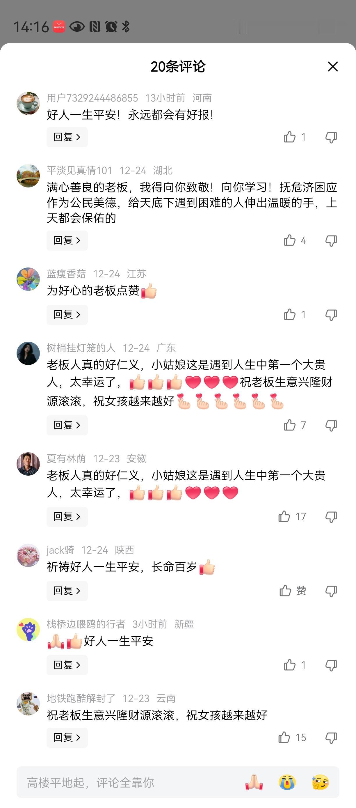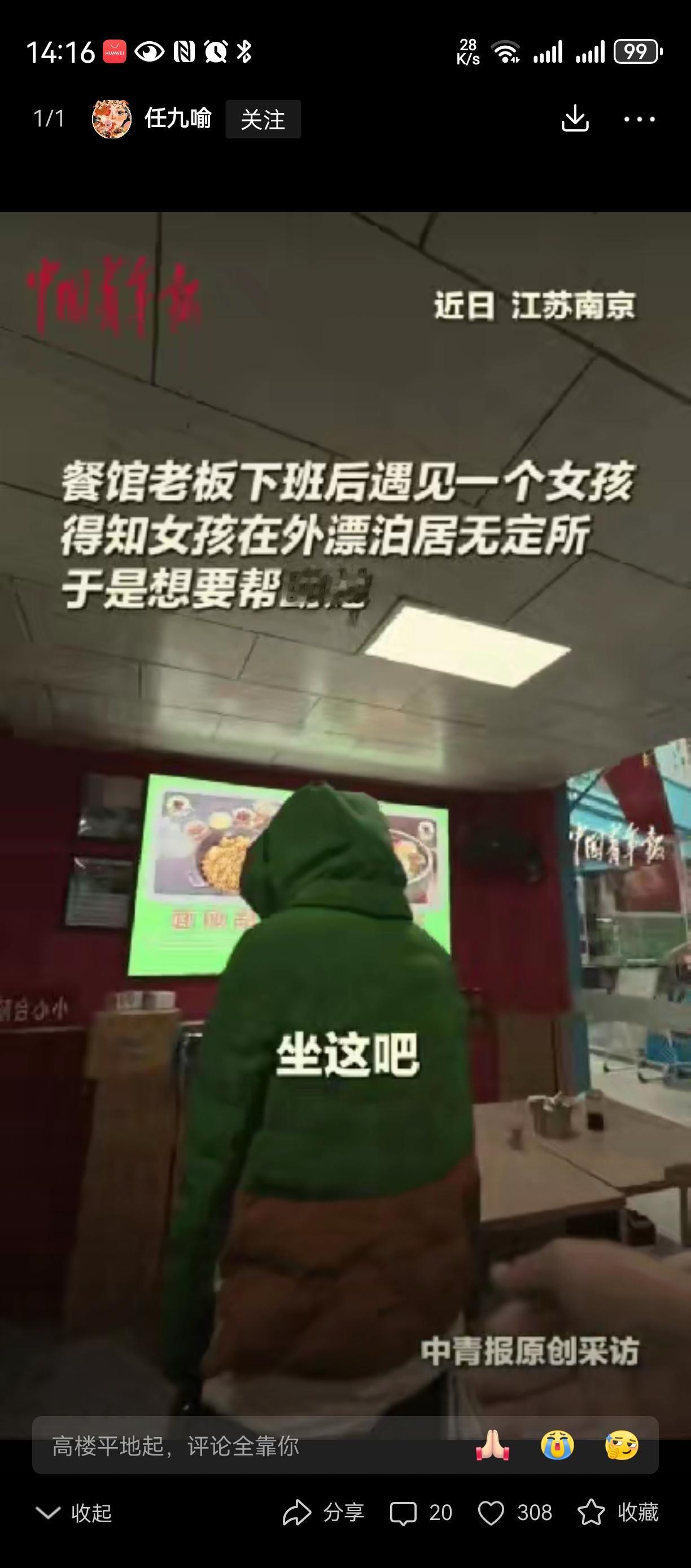温情中的一个新闻[赞][赞][赞] 就是一个女孩, 在逆境中被陌生店家帮助。 给吃的找住宿找工作, 让这个冬日有温情。暖心助人