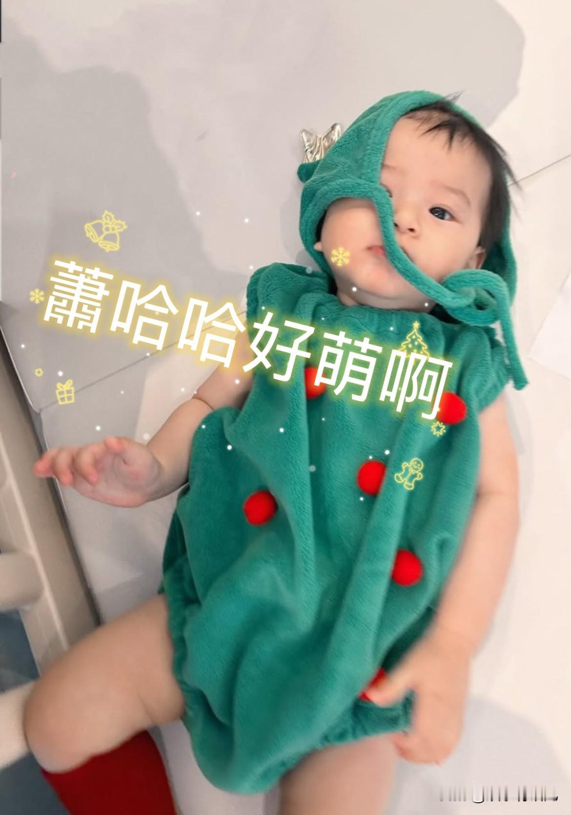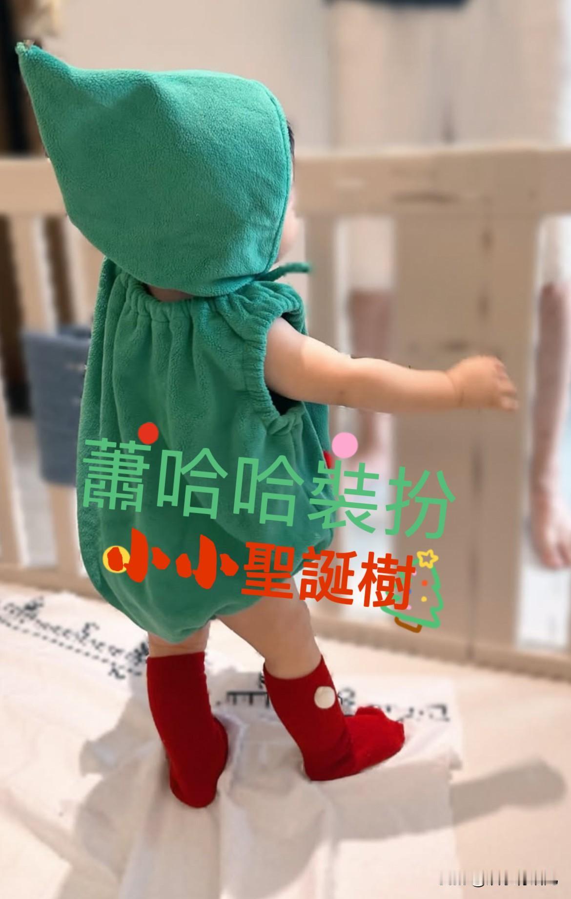 萧正楠与黄翠如的长子萧哈哈,今年是萧哈哈过第一个圣诞节,萧哈哈今天装扮一颗小小圣诞树,好萌哈!萧哈哈这个造型,黄翠如透露只维持半小时,萧哈哈的原形全露出来了,帽子扔了,袜子脱了,还有个超萌的小屁股在摆呀摆。黄翠如 萧正楠