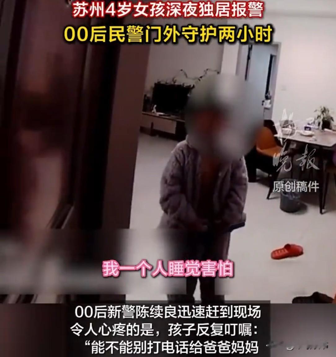 “叔叔,能不能别打电话给爸爸妈妈!”深夜,苏州4岁女孩半开着家门,小身子躲在门后,仰着小脸向民警哀求道。民警本想联系她父母,可听见女孩轻声又说了一句话后,瞬间心软,打消了念头。 12月22日晚上,苏州黄桥派出所接到一名4岁小女孩的求助电话,女孩说,“自己一个在家太害怕了。” 值班民警一听是这么回事,一边柔声安抚着小女孩,一边问清她的家庭住址,随后立刻让同事陈续良火速赶了过去。 几分钟后,警车停在了小女孩家的楼下。 陈续良走到女孩家门口,抬手敲了敲门,放轻了声音说:“小朋友,警察叔叔来了,你别怕。” 门里静了几秒,接着就传来轻轻的脚步声,然后一道细细的门缝慢慢打开了。 一个扎着小辫子的小女孩,从门缝里探出头来,圆圆的眼睛里还带着点泪光,看到穿着警服的陈续良,眼睛一下子亮了起来,小手紧紧抓着门把。 陈续良看着她这副模样,心里软了下来,温和地笑了笑:“小朋友,你真棒,还知道打110找叔叔。你父母怎么这么粗心呀?把你一个人落在家里,你还这么小,多害怕呀。” 说着,他掏出手机,打算给小女孩的父母打个电话,让他们赶紧回来。 可小女孩原本带着点笑意的脸,一听见要打电话给爸爸妈妈,立刻就垮了下来,小嘴巴也撅了起来。 她赶紧把房门再打开一点,小小的身子躲在门后,仰着小脸哀求道:“叔叔,能不能别打电话给爸爸妈妈!” 陈续良一愣,看着女孩着急的样子,心里琢磨着:难道是孩子爸妈平时对她太凶了,孩子怕他们知道了会骂她? 他心里顿时有点生气,暗暗想:等一下打电话给他们时,一定好好教训他们一顿,怎么能这么对孩子,孩子才4岁,独自在家多危险啊。 不过对着小女孩,他还是摆出了温柔的笑脸,摸了摸她的小脑袋说:“是不是你爸妈平时凶你了?别怕,等一下叔叔一定好好说说他们,替你出口气。” 小女孩连忙使劲摇头,小手摆得像小拨浪鼓一样:“不是的,不是这样的!” 她仰着小脸,认真地跟警察叔叔解释:“爸爸出差了,要好久才能回来,妈妈晚上去医院上夜班了,我不能打电话过去打扰他们。妈妈说过,上班的时候不能接电话,会影响工作的。” 原来,妈妈之前上夜班前跟她说这句话,小女孩就牢牢地记在了心里,哪怕自己吓得想哭,也不愿意打扰爸爸妈妈工作。 陈续良听完,心里瞬间一暖,刚才的火气一下子就没了。 看着眼前这个小小的、却这么懂事的孩子,他的心都化了,也彻底打消了打电话给她父母的念头。 他蹲下身,跟小女孩平视着,笑着说:“好,叔叔听你的,不打电话给你爸妈。叔叔就在门口陪着你,好不好?” 小女孩一听这话,脸上立刻露出了笑容,眼睛弯成了月牙,使劲点了点头:“好!谢谢叔叔!” 之后,陈续良就坐在门口的台阶上,陪着小女孩聊天。他问小女孩几岁了,喜欢吃什么零食,平时都玩什么玩具,小女孩也叽叽喳喳地跟他说着,脸上的害怕早就不见了。 聊了十几分钟,小女孩就开始打哈欠了,小脑袋一点一点的,明显是困了。她揉了揉眼睛,强撑着不让自己睡着。 陈续良看在眼里,轻声对她说:“困了就去睡吧,叔叔就在门口守着你,一直等到你妈妈回家,好不好?” 小女孩还想撑着陪叔叔说话,可听了这话,困意一下子就涌了上来。她还是有点不放心,睁着圆圆的眼睛又问了一句:“真的吗,叔叔?你会一直在这里吗?” 陈续良笑着点了点头,给了她一个肯定的眼神:“叔叔说话算话,一定在这里陪着你。” 小女孩这才放心地笑了,跟陈续良说了声“叔叔晚安”,就轻轻关上了房门,抱着小熊玩偶回房间睡觉去了。 她知道,有警察叔叔在门口守着,就不会有坏人来,自己可以安心睡觉了。 陈续良就这么坐在楼道里,安安静静地守在门口,时不时听听屋里的动静。 楼道里有点冷,他裹了裹外套,一直没离开。 时间慢慢过去,2个多小时后,楼道里传来了脚步声。 一女子匆匆走了过来,看到坐在门口的民警,一下子愣住了。 陈续良站起身,跟她说明了情况。 女孩的妈妈听完,眼眶一下子就红了,又感动又愧疚,拉着陈续良的手一个劲地说谢谢。 “穷人的孩子早当家”,这4岁小女孩的懂事,真是戳中了所有人的柔软。独自在家害怕到报警,却还记着“不能打扰爸妈工作”,这份小小的体贴比任何话都暖。民警两个多小时的默默守护,更是把这份温情拉满。 所谓岁月静好,不过是有人替你负重前行,而这份来自孩子的体谅,正是世间最动人的温柔。 愿每个懂事的孩子,都能被世界温柔以待!