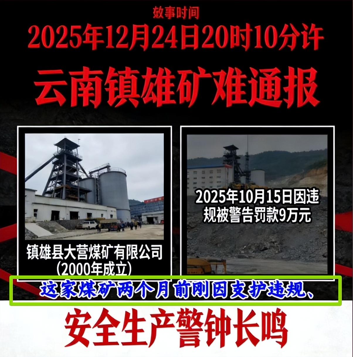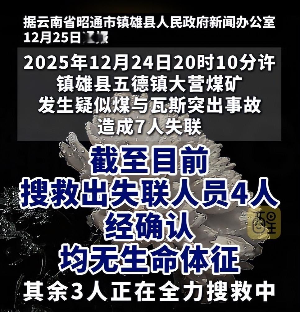 镇雄大营煤矿这场惨祸,撕开了安全生产的遮羞布,看得人痛心疾首。 12 月 24 日 20 时 10 分,五德镇大营煤矿 1503 巷道突发煤与瓦斯突出事故。一声闷响后,7 名外地矿工失联,侥幸逃生的工人连滚带爬冲出巷道,惊魂未定。救援队伍连夜驰援,面对 98% 的致命瓦斯浓度、近 200 米被埋巷道,9 支队伍轮番下井,可搜出的 4 人已无生命体征,剩余 3 人仍生死未卜。 这场悲剧早有预兆。事发前两月,煤矿因 4 项致命违规被罚 9 万,施工平台不合规、空顶作业隐患未除,条条都藏杀机。更讽刺的是,12 月初县领导刚强调过安全,转头就出事。这家私营煤矿一心追产能,2023 年完成 60 万吨改扩建,却把安全抛诸脑后,周边村民房屋田地开裂,搬迁赔偿还因人而异。 9 万罚款对逐利的矿主来说,不过是九牛一毛。安全口号喊得震天响,实际却是漏洞百出。工人下井谋生,不是用性命填利润窟窿。 生命不是利润的筹码,罚单不该是失职的遮羞布。唯有彻查追责、严惩漠视安全者,才能告慰逝者,守住矿工的保命线!
