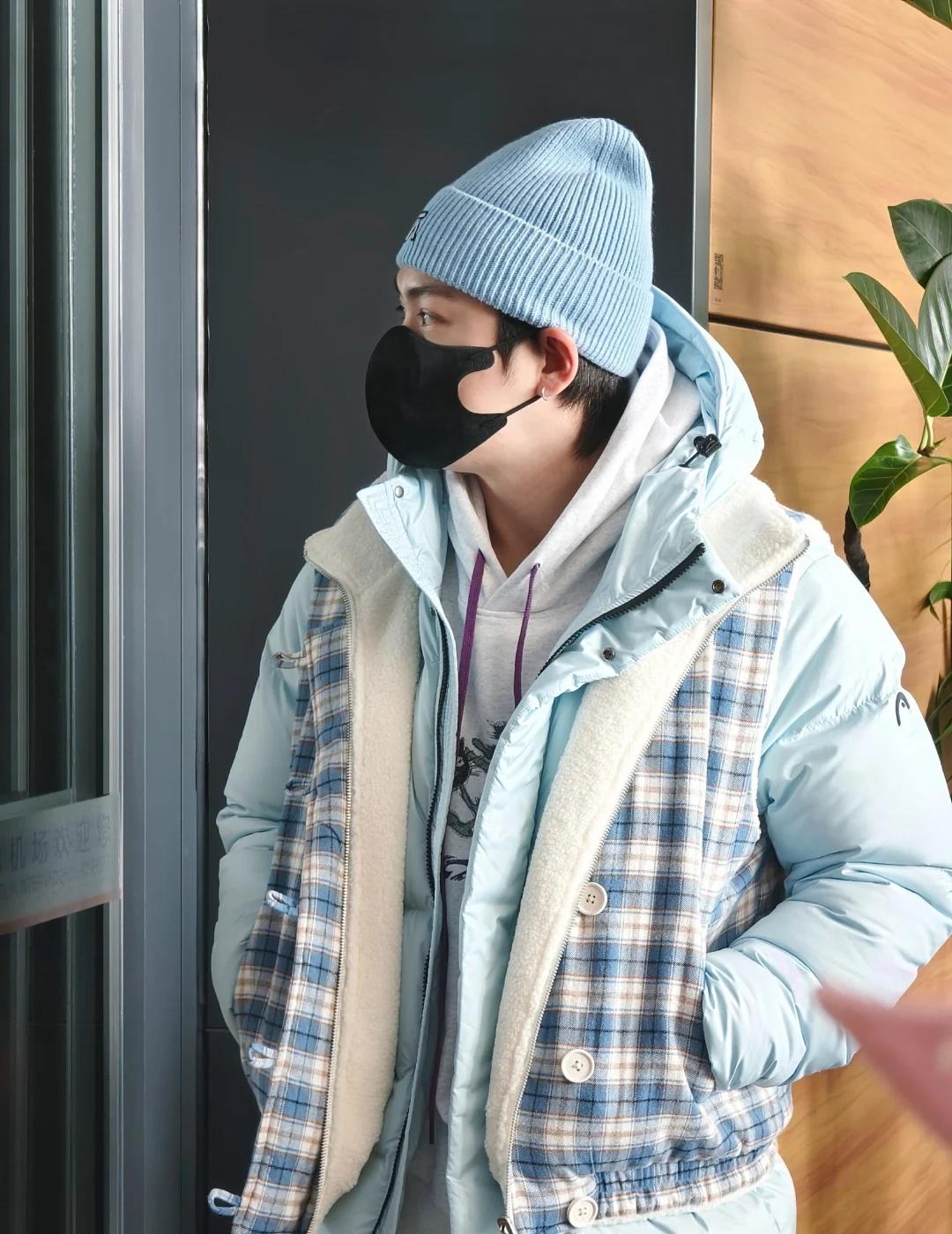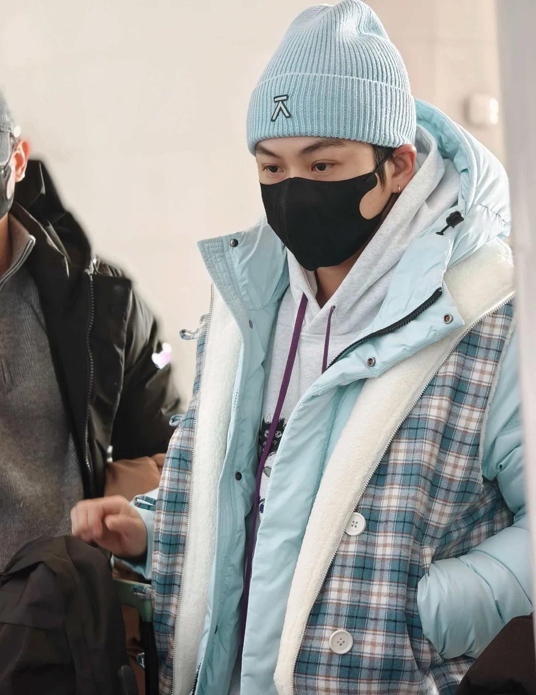 武艺冬日叠穿也太可爱了吧💙浅蓝色系好清爽 武艺最新的机场私服穿搭,冬日叠穿很厚实很保暖,一件蓝色运动连帽羽绒服+蓝白格纹的羊绒马甲,还有蓝色针织帽、白色卫衣卫裤,一套天蓝色和白色的搭配好清爽好男大!可可爱爱的! 武艺 武艺同款 明星同款 男明星穿搭 男明星同款 冬日色彩图鉴 入冬一秒穿什么 羽绒服穿搭 入冬怎么穿