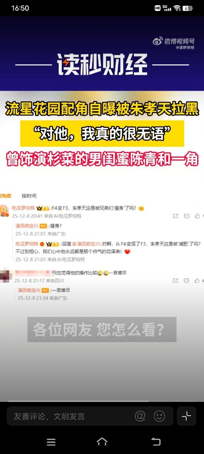朱孝天亲手毁了自己的路人缘 一手好牌打得稀烂,这波操作谁看了不费解?从曾经的顶流偶像到争议不断的话题艺人,朱孝天的路人缘全是自己一步步 “作” 没的!直播直言早就删掉贾玲微信,连 “节目里的人基本都删了” 都理直气壮,把私下社交断舍离当成公开谈资,让网友直呼情商堪忧;转头又在直播带货麻六记酸辣粉,一边对着杉菜离世的话题哽咽落泪,一边反问 “我为什么不能卖”,被质疑消费逝者博流量、前后言论矛盾。如今又因 F4 合体巡演缺席争议,深夜造 谣其他艺人,没实锤的指控疯狂抢占热搜,却被扒出个人巡演票房惨淡、50 元低价票都滞销的现状。从拉黑艺人引发社交争议,到带货蹭热度遭诟病,再到靠爆料顶流博眼球,每一次操作都在消耗大众的青春滤镜,网友锐评:“好感全败光,只剩炒作套路了”