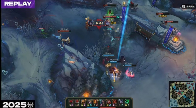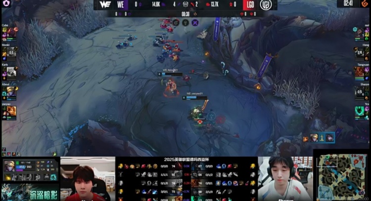 [23:02]河道遭遇,Tangyuan岩雀岩突+Ycx锤石钩子留住了WE上辅两人,LGD打出0换2,拿下听牌龙!