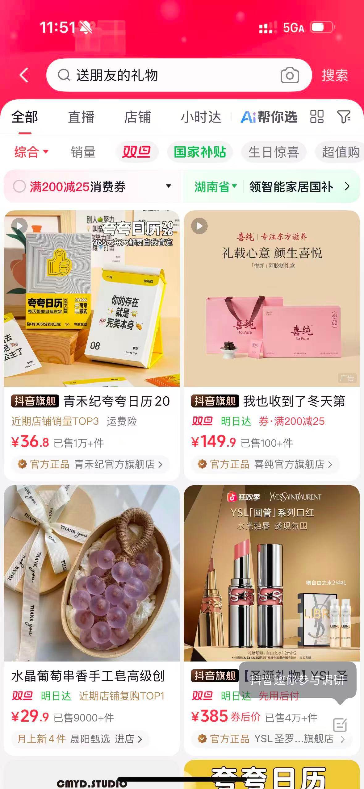 晒出我的新年送礼好物清单送礼什么才重要?当然是使用不踩雷!年末送礼,我悟了~好物清单得覆盖所有礼赠场景,精挑细选才能选中好礼。这回的成功选礼清单,得感谢抖音商城年终狂欢季的给力优惠!在抖音搜索【狂欢季消费券】就可以领消费券,买的越多,省的越多,一年到头,给亲友们都送全喽!