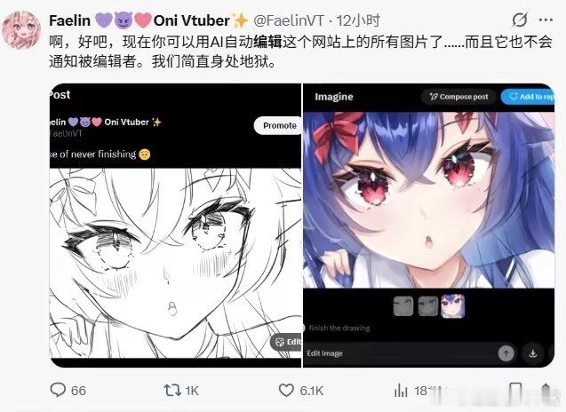 推特增加图片一键AI编辑功能引发争议、画师开始出逃
