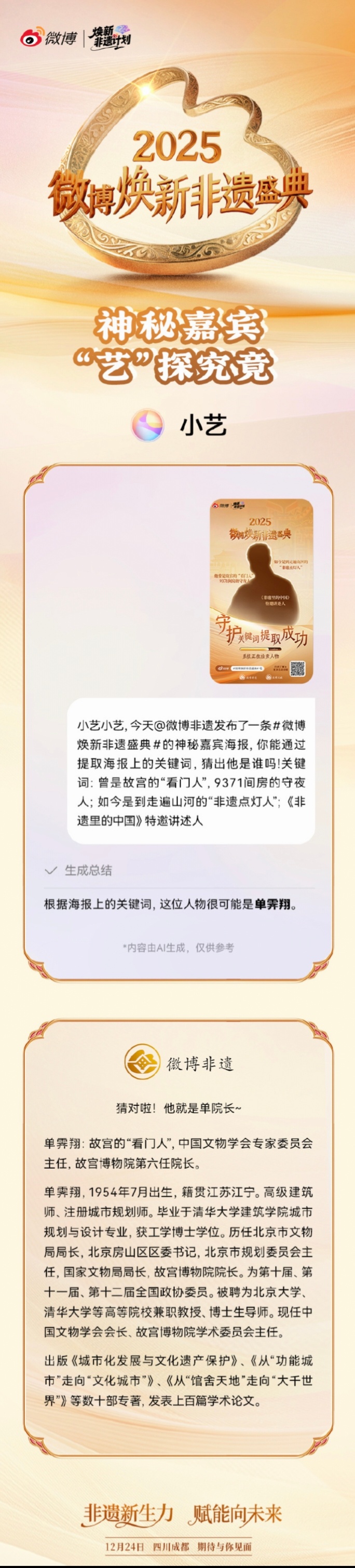 微博非遗盛典首位AI员工上岗 会玩啊~小艺竟然“上岗”2025微博焕新非遗盛典颁奖礼AI员工!盛典上小艺的表现真的有点东西。不管是颁奖播报还是跟嘉宾互动,那语调情感丰富、抑扬顿挫的,听着特别像真人,配合现场大屏的多模态互动,流畅度满分关键是小艺不光嘴皮子溜,干活更是把好手!随时随地问问TA,不管是复杂的知识问答、接地气的方言识别,还是现在超火的AI修图,都能精准搞定