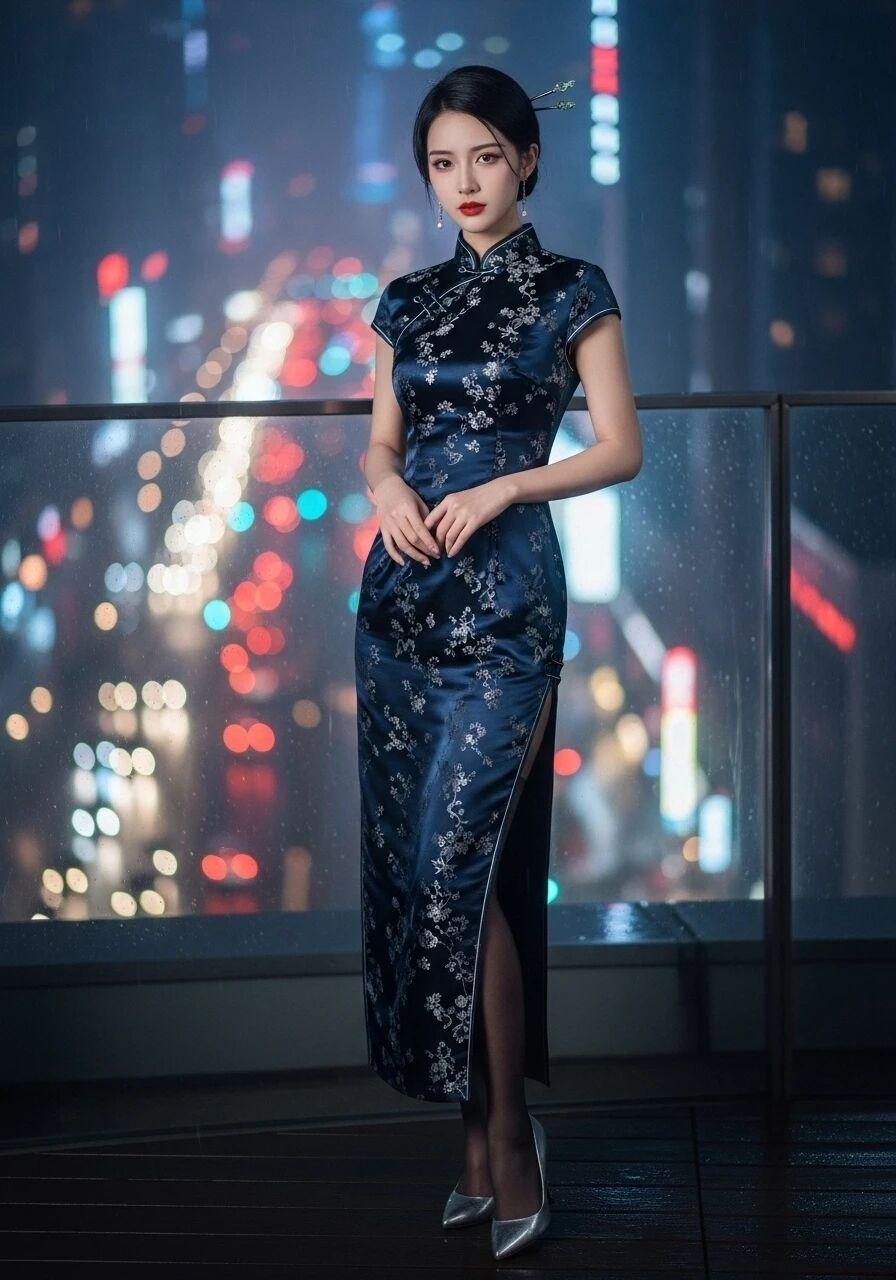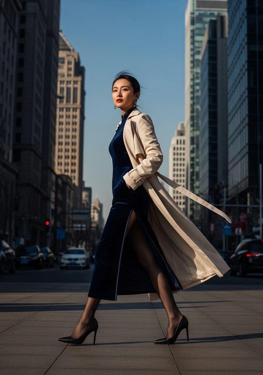 旗袍与都市丽人 当都市的棱角撞上旗袍的柔线,每一步都是传统与现代的共舞——她不是