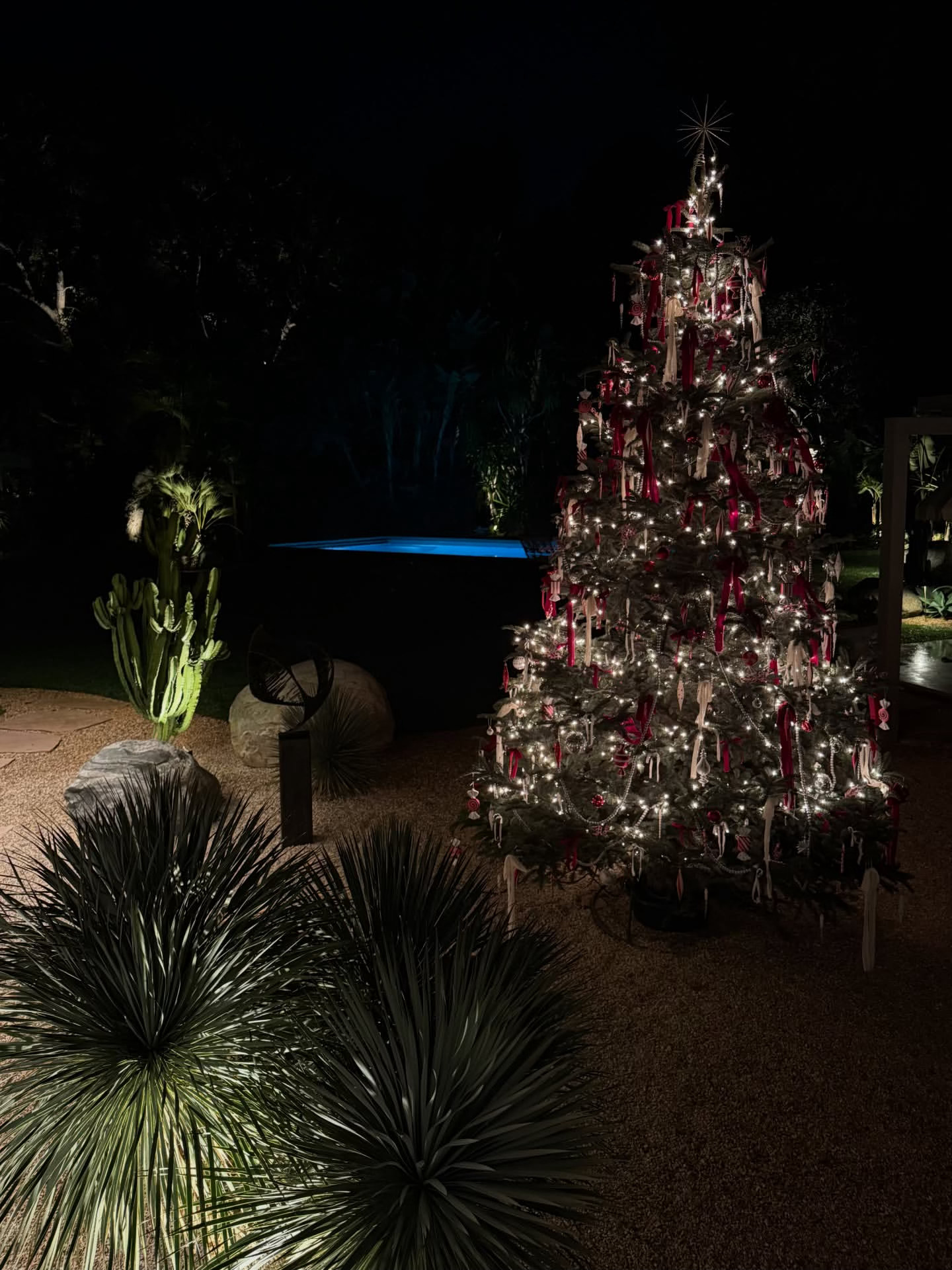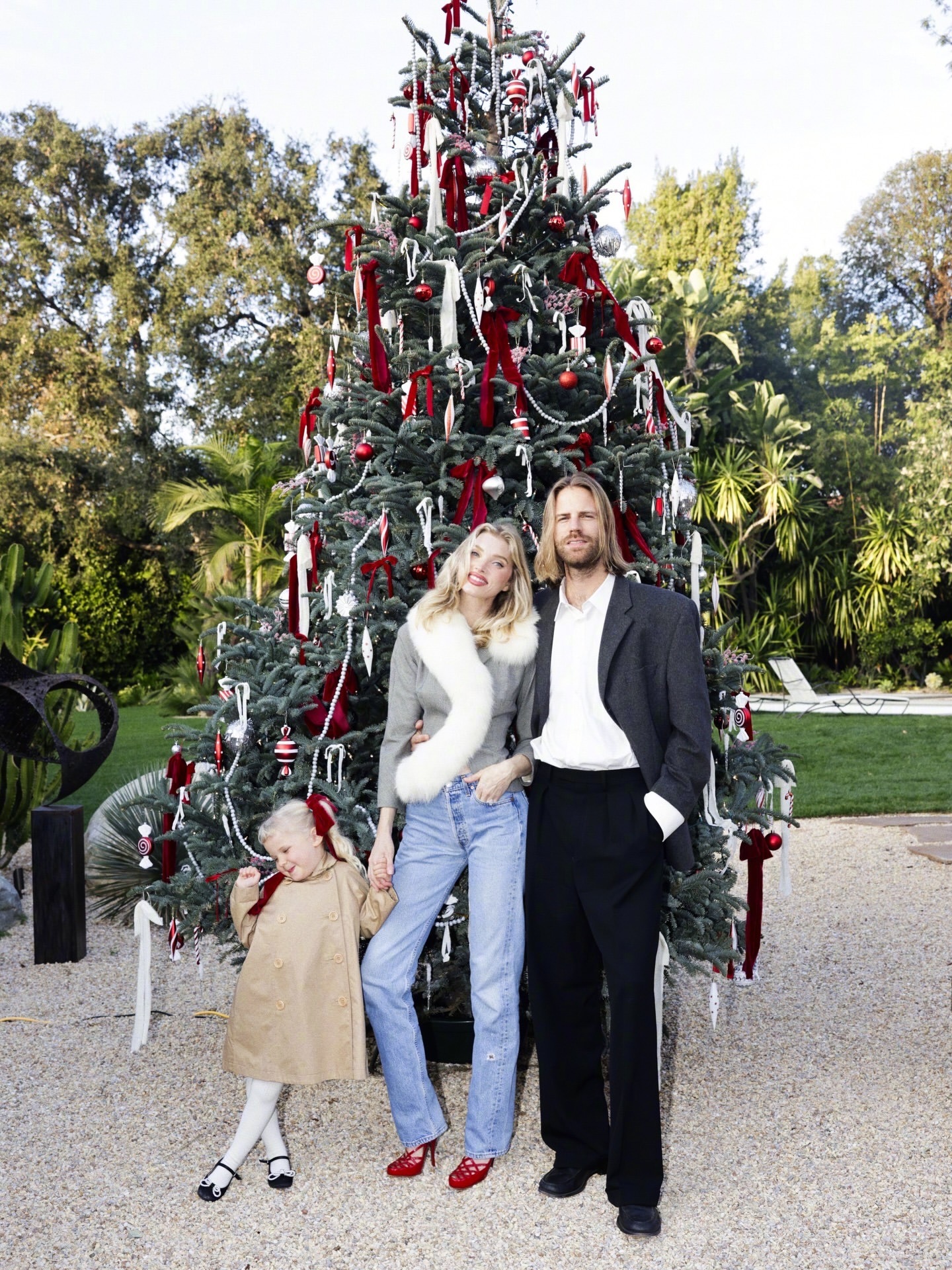 超模Elsa Hosk 和未婚夫Tom Daly及女儿的圣诞全家福。圣诞树🎄放在了自家的庭院中,温馨又别致。Elsa的漂亮红高跟鞋和女儿的红丝带相互呼应,增添了浓郁的节日气氛!