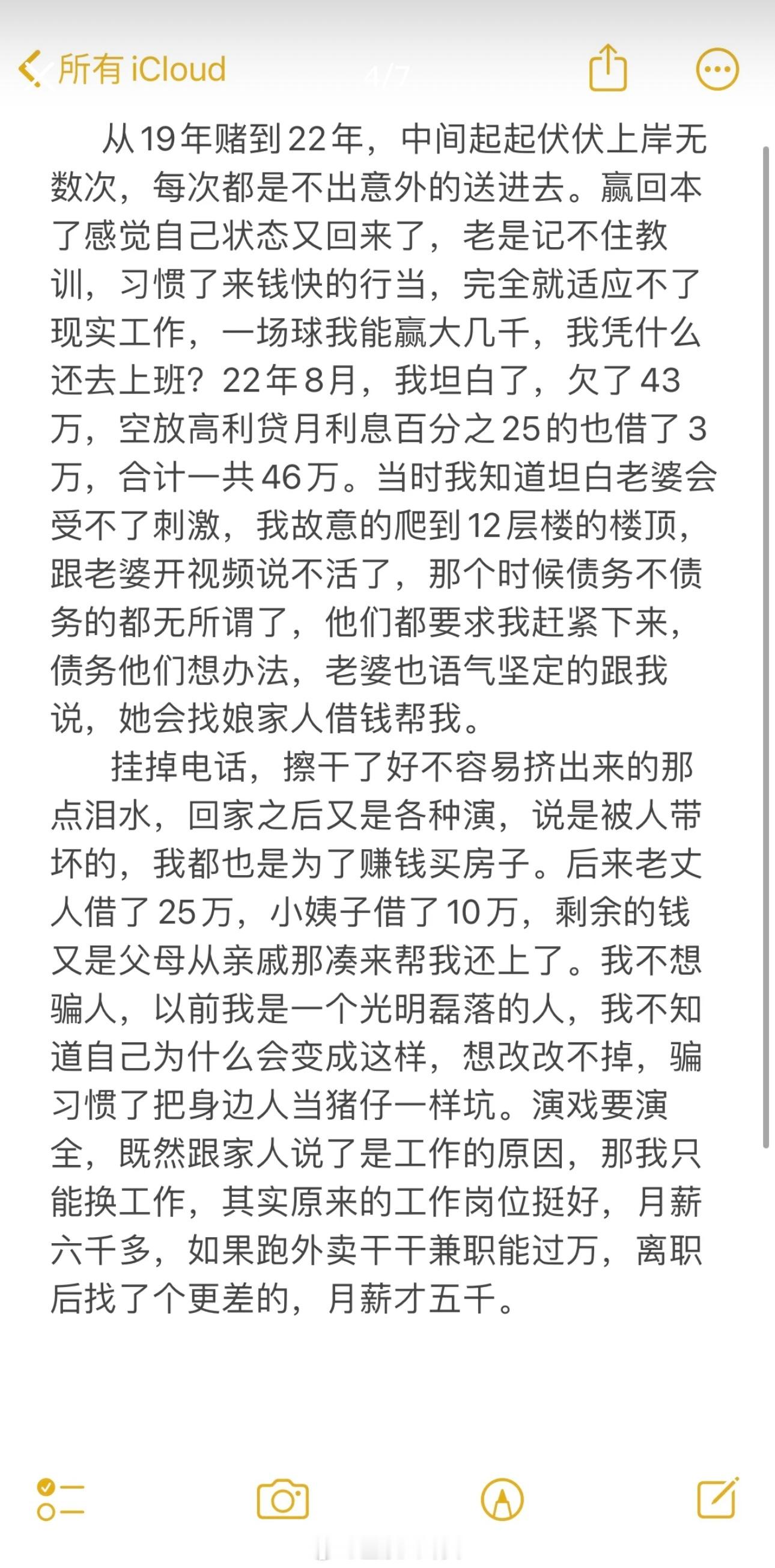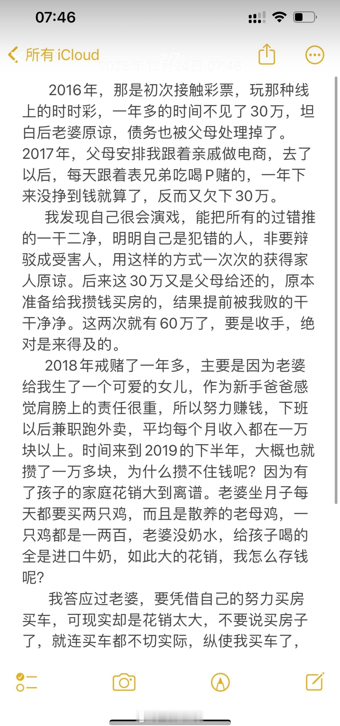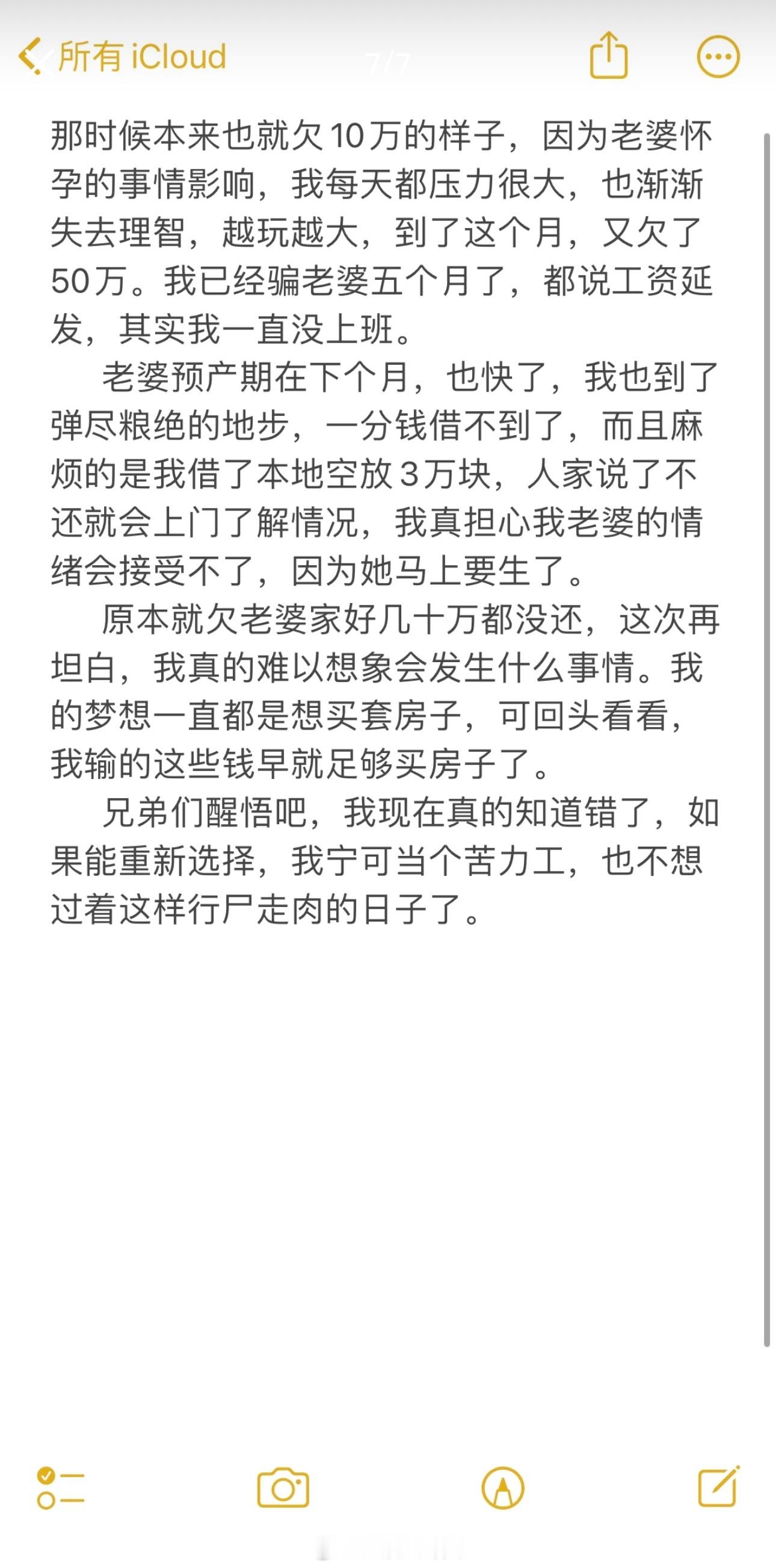 网上刷到的:老婆怀二胎快要生了,博主又瞒着输了50万,债务爆发,高利贷威胁登门,彻底废了……来源:戒赌home