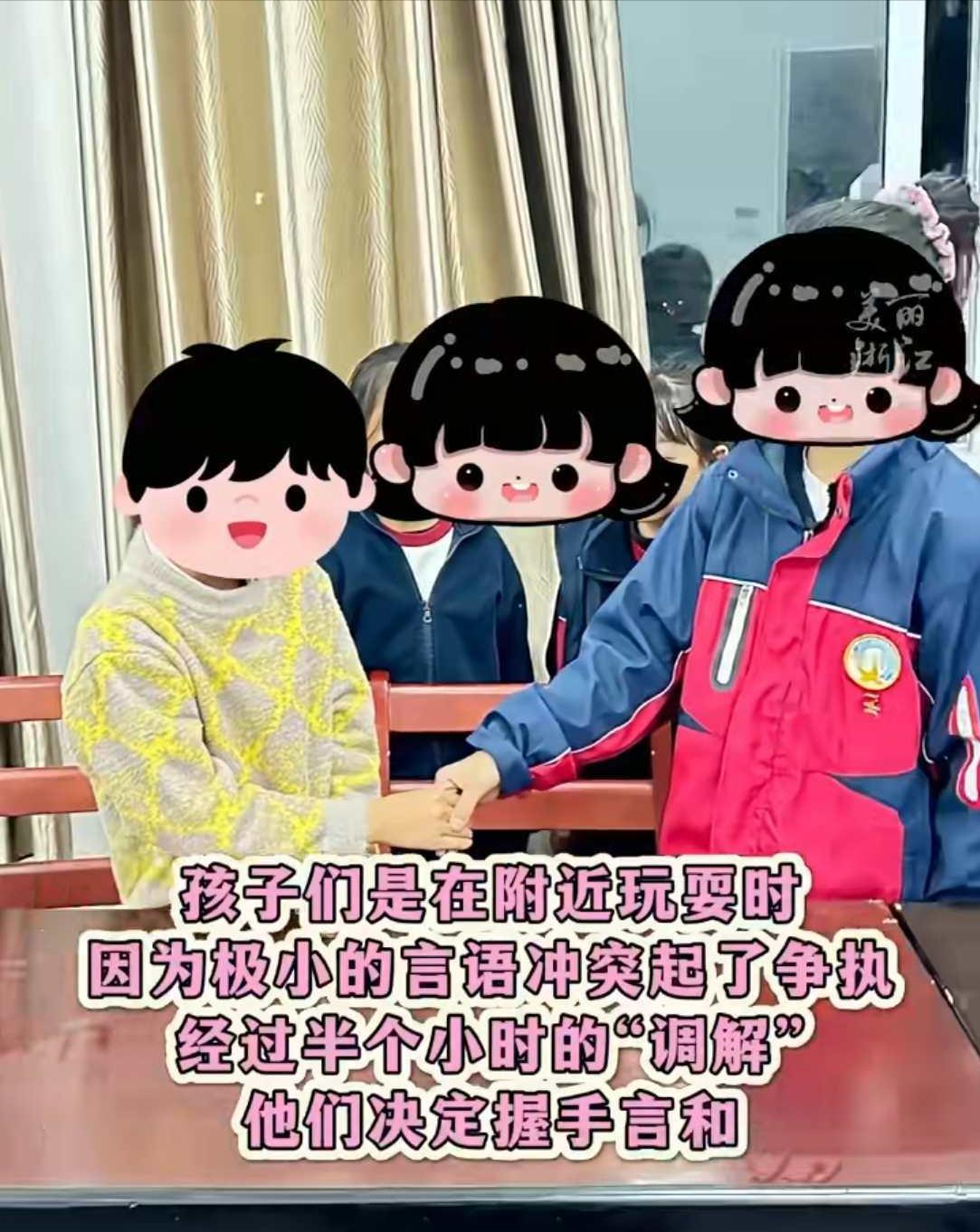 萌翻!7 名小学生吵架组团去派出所评理,这波操作该夸还是该引导? 12 月 24 日浙江丽水,7 个小学生玩耍时起争执,谁也不服谁,竟直接跑到派出所找警察叔叔 “评理”。民警超有耐心,特意开调解室让孩子们分边发言,男生女生各推代表陈述,半小时后大家握手言和,还鞠躬感谢民警。 这事儿看着好笑,其实藏着两层意思。一方面得夸孩子们 —— 知道找 “权威第三方” 解决矛盾,比哭闹、动手或找家长 “撑腰” 更有想法,说明他们有规则意识,知道 “有问题找警察”。但另一方面也要注意,这更像孩子找不到合适解决渠道的无奈之举,也暴露了日常冲突处理教育的小缺口。 该夸的点: 规则感在线:知道寻求中立第三方裁决,不蛮干,比很多只会撒泼的成年人还理性。 沟通意识强:愿意当众表达诉求,而不是闷着或私下报复,这是社交能力的小进步。 要引导的地方: 优先渠道错了:小学生吵架,首选该找老师、家长,派出所是处理违法犯罪的地方,不该成 “儿童纠纷调解站”。 情绪管理不足:争执升级到要找警察,说明他们还不会冷静沟通、换位思考,需要大人教具体的化解方法。 给家长和老师的小建议: 教步骤:吵架先冷静→各自说诉求→一起想办法→互相道歉,一步步练沟通技巧。 立渠道:明确遇到矛盾先找班主任、家长,这些是更适配孩子的 “第一调解人”。 做示范:大人处理分歧时少指责、多协商,孩子会跟着学。 总的来说,孩子们主动找渠道解决问题值得肯定,但更要帮他们分清场合、掌握更高效的沟通方式,让他们真的会解决问题。