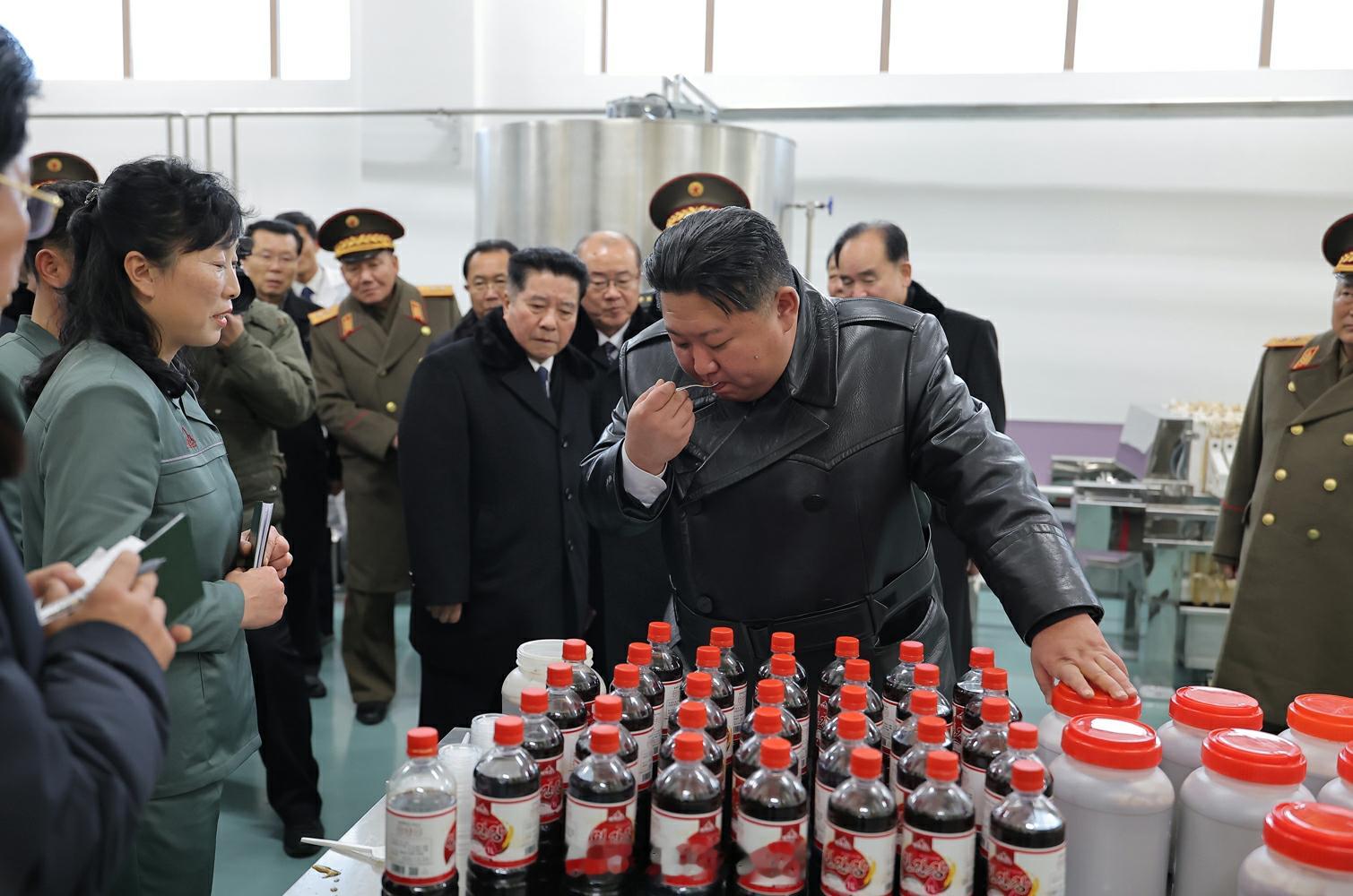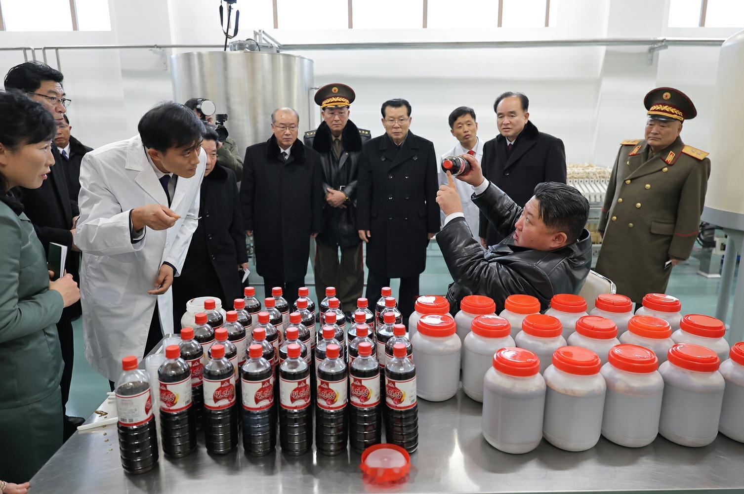 金正恩同志出席定平郡食品厂竣工仪式,车间现场试吃后要求工作人员对产品细节进行改进