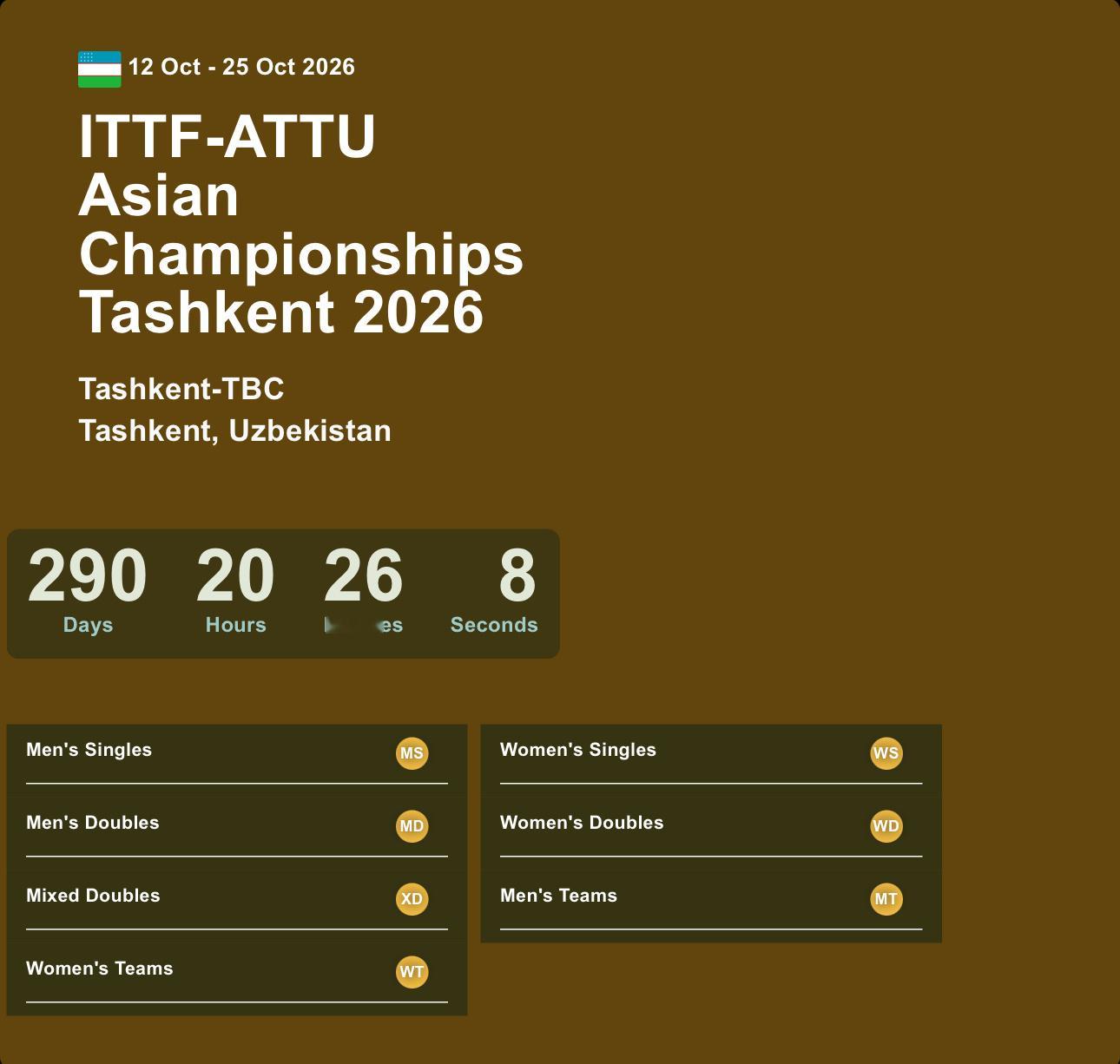 ITTF赛历也更新了亚锦赛时间10.12-10.25还以为亚乒联官网随便写的……真打2周吗😢亚锦页面显示有团体项,还以为是草台忘改了……