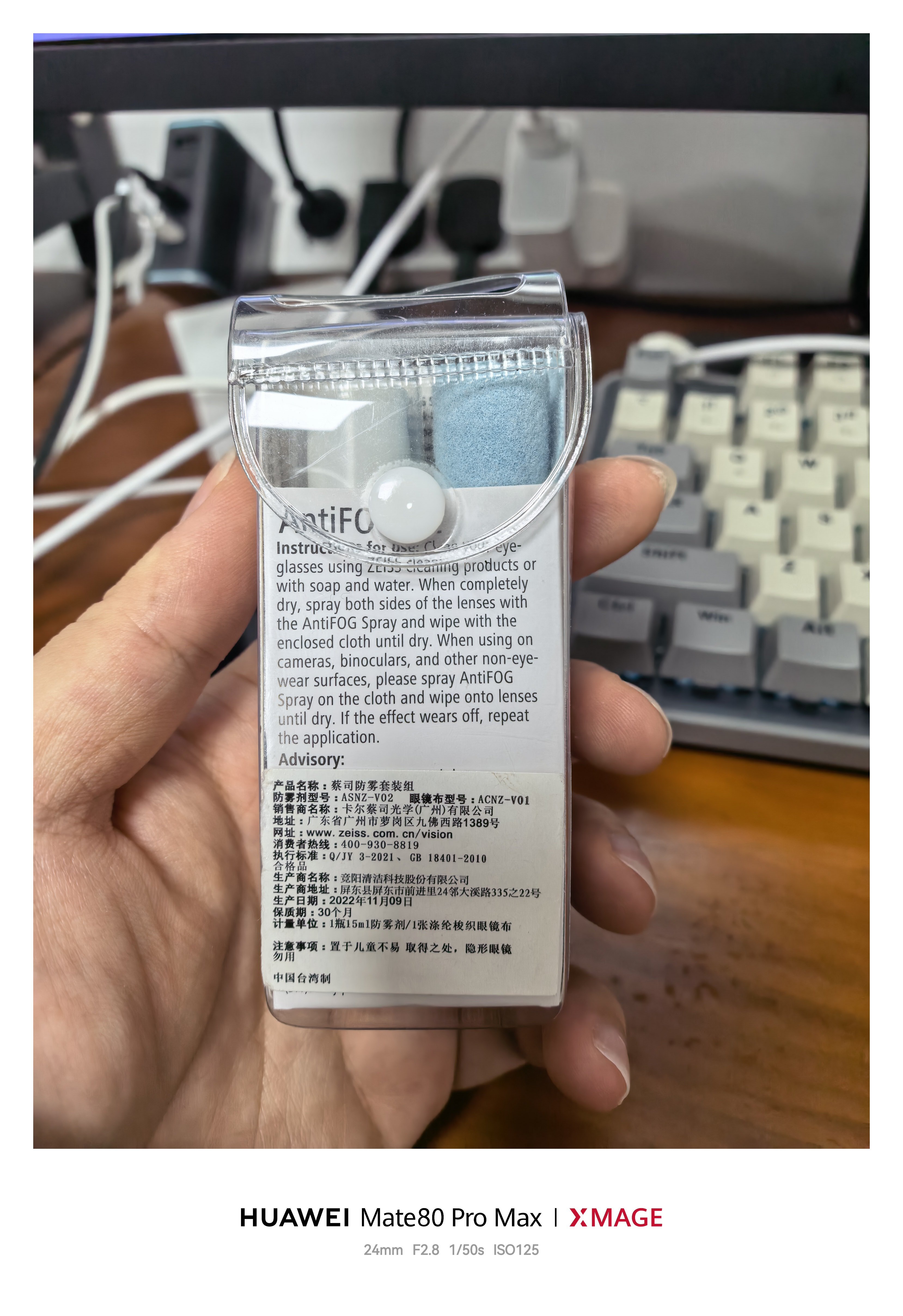 这个蔡司的防雾喷雾还挺好用的,在黑河从户外-20℃进室内20℃,眼镜都不起雾,我这是两三年前还在工地的时候买的,已经过期了,没想到还这么有效果,可惜没拍个一镜到底找蔡司投个广子
