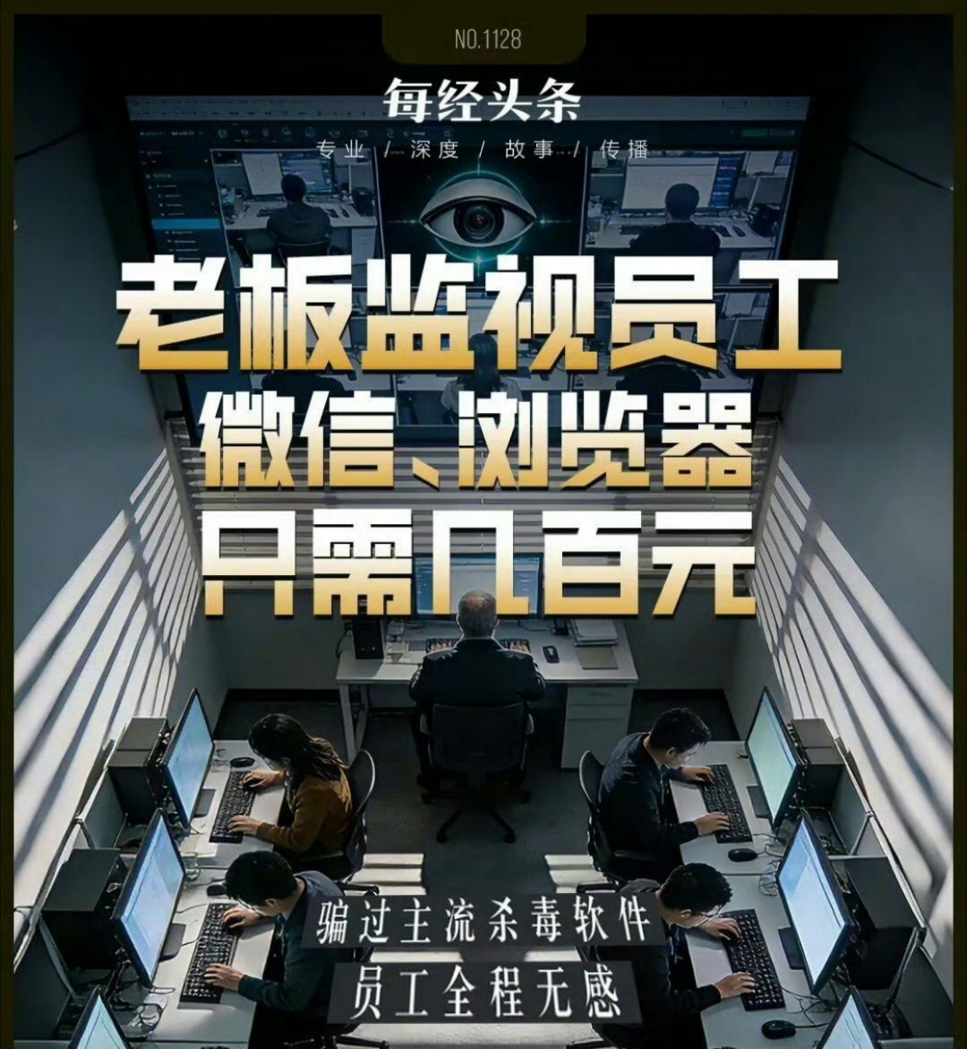 老板监视员工微信只需300元背景就是软件商公开售卖监控神器!这款软件能让杀毒软件黑了察觉不到它,在偷偷系统性采集员工隐私,真的太离谱了。这事能被爆出来,说明不少公司都存在这类问题……建议大家用公司电脑就只处理工作,啥私人信息都别留