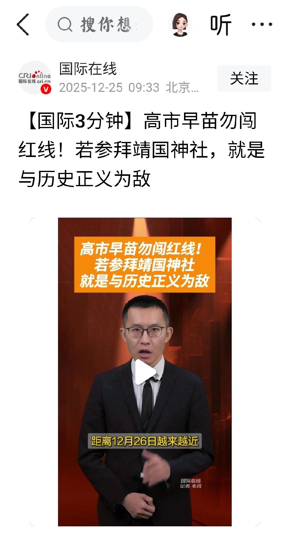 高市拜鬼,恶意构陷 个人观点:个人预判日本当前女领导人必会去拜鬼。 因为第一,这对于自己的支持率和自己的形象与地位,将是莫大的鼓舞,现阶段达到无人可及的地位,这对于日本女领导人来说是莫大的诱惑,就像垃圾吸引苍蝇一样。 在这位日本女领导人看来,日本的国家利益,日本的民众民心都是可以利用的工具,都是可以牺牲的物品,为了达到一己私利,通通都可以牺牲。 个人认为,日本当前女领导人拜鬼后,立即启动早就规划完毕的应对方案,无外乎是老套路:“恶意挑衅,颠倒是非,倒打一耙,伪装可怜,骗取国际同情,间接逼迫美国选边站队,希望引起中美冲突,日本顺势渔翁得利,摆脱二战战败国的地位,恢复正常国家。” 个人观点:我们一定要保持战略定力,心态情绪要坚如磐石,面无表情。当务之急是想方设法,如何精确压缩日本,牢记:切不可做口舌之争。