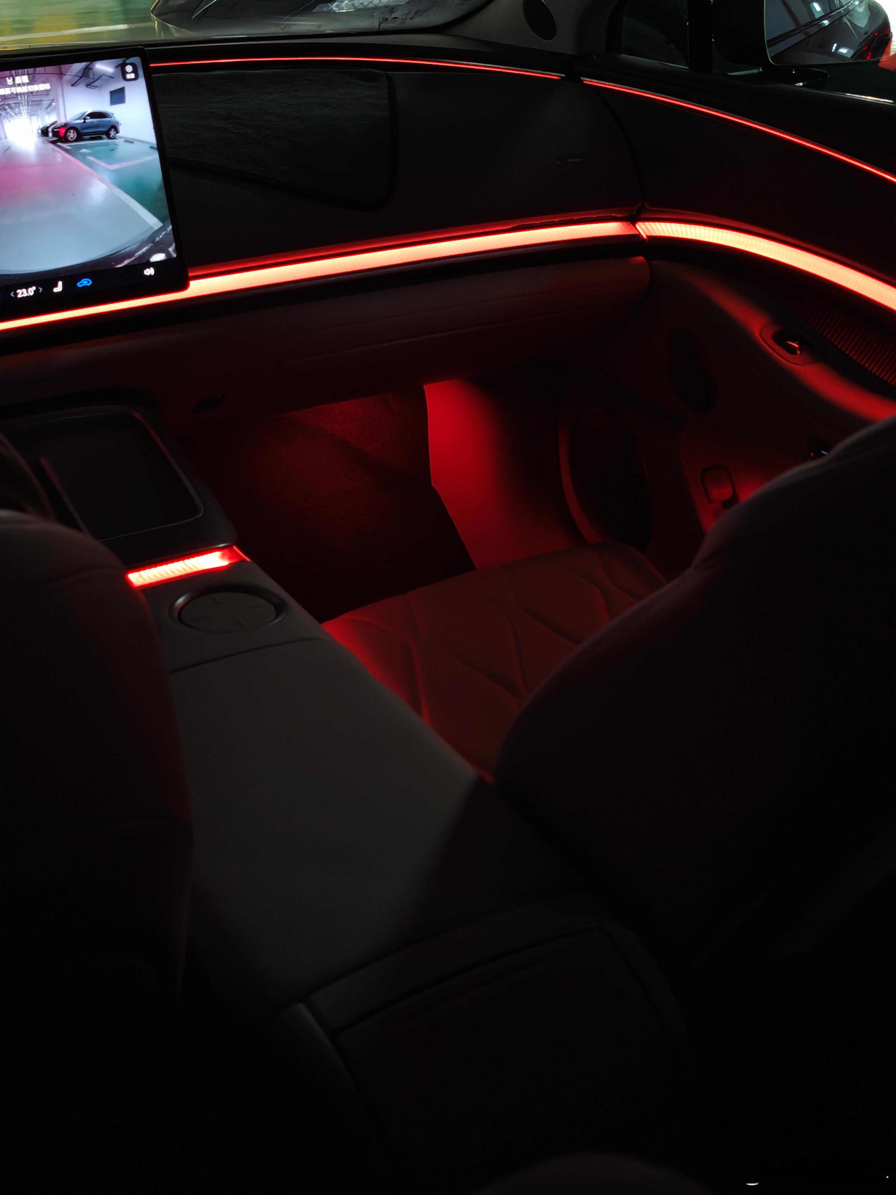 别的暂时不管啊,但我觉得昊铂A800这个车确实在内饰设计上是花了心思的。三个点很细节第一个是遮阳帘在天幕玻璃的夹层,收拾起来比较方便,好打理。第二个它车内的氛围灯不刺眼。有的车,车内氛围灯打开就跟探照灯一样,当然个人还是更喜欢漫反射的那种。第三个氛围灯除了光源比较柔和,整个车厢内是全包围的,也就是说,从前到后环抱式的氛围灯,这个感觉就比较高级了。内饰你们看,很有质感。大v聊车