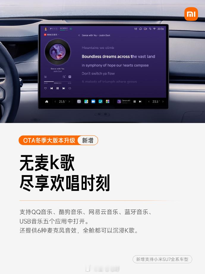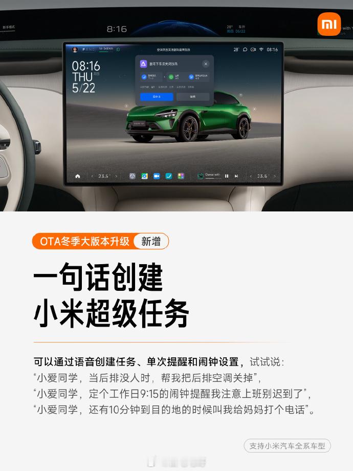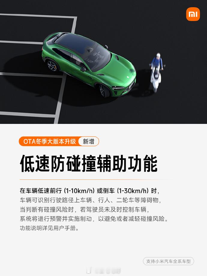 小米汽车的冬季OTA升级来了这次升级覆盖的车型SU7、YU7、SU7 Ultra这次更新的功能挺多的,而且还不少安全性实用功能,紧急转向辅助功能(AES)、低速防碰撞辅助功能等等都包含在这次更新里面~小米汽车OTA