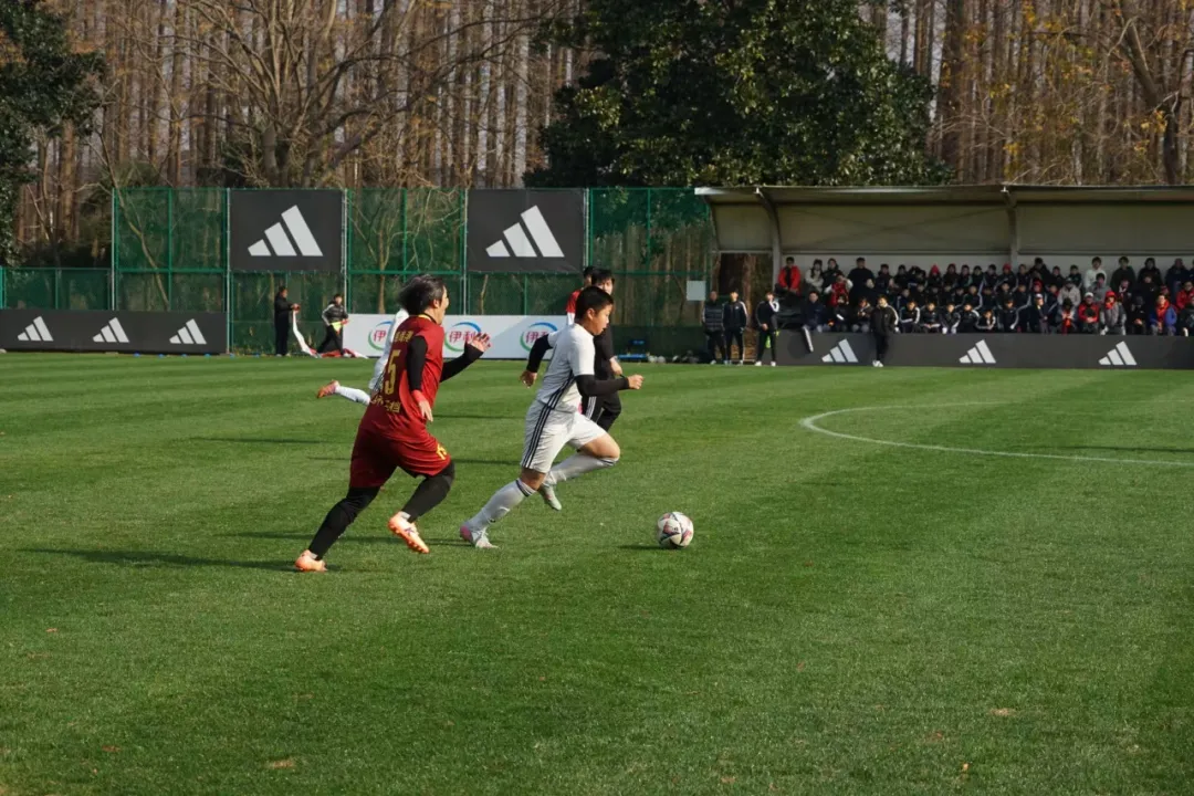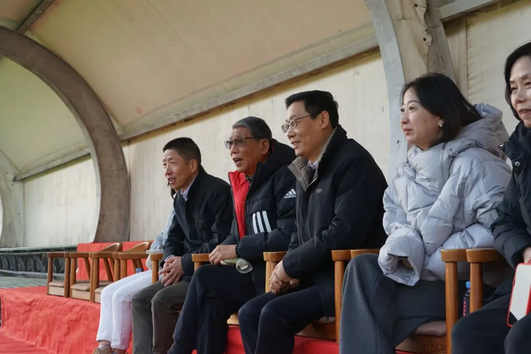 下午,他又亲自坐镇基地一号场地看台,在海港职业联赛起步的第一个主场,观看并指挥了“1314”年龄段基地球队和球迷队伍的友谊赛。