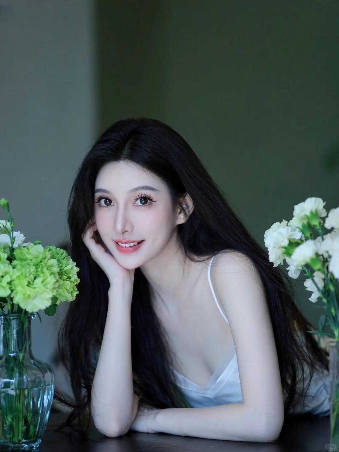 双眸顽皮可爱的兼职模特小姐姐,眼梢梨涡像冰镇莲子羹的浅盏,藏于笑靥之间,未笑时隐于肌理,若有似无;笑时轻陷如羹盏盛露,玉骨冰肌透着淡粉,衬得顾盼生辉,俏然灵动。偶尔偷眨明眸,梨涡随眼波轻颤,像羹盏漾开细浪,俏皮中裹着柔媚,自带古雅甜韵。