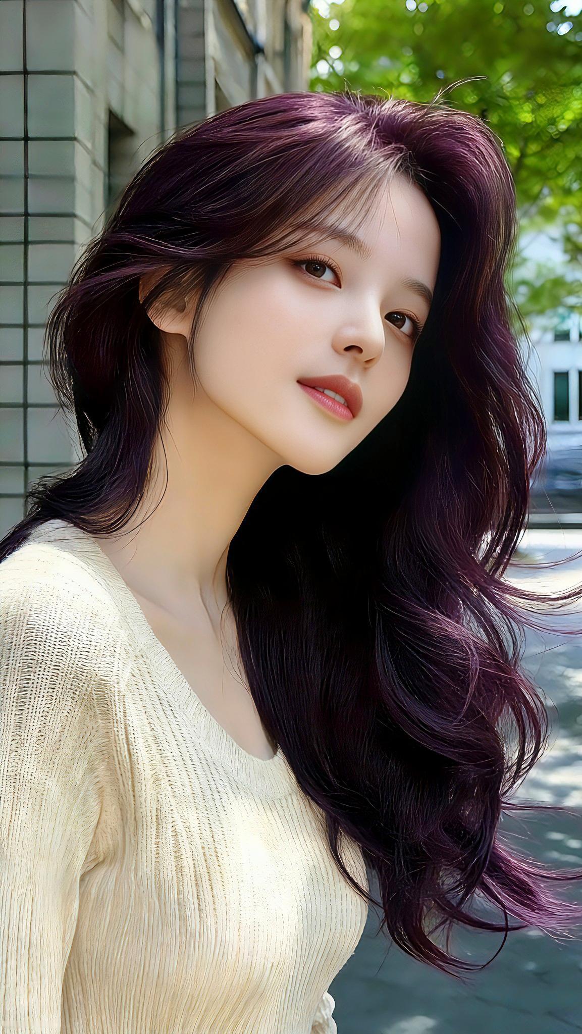 这个发色超级显白 紫色长发 温柔气质