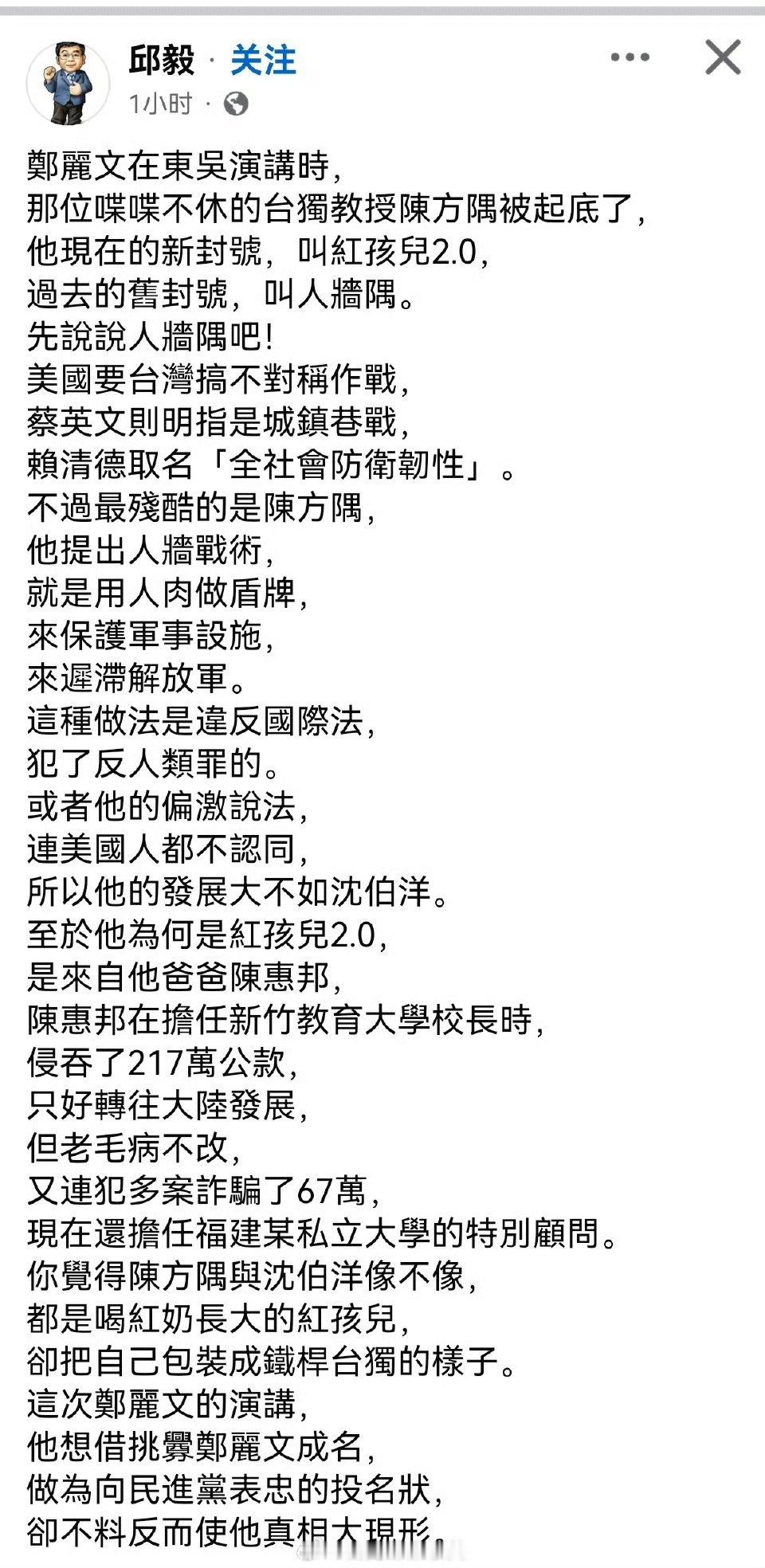 邱毅:以前叫“人墙隅”,现在叫红孩儿2.0热点观点烽火问鼎计划
