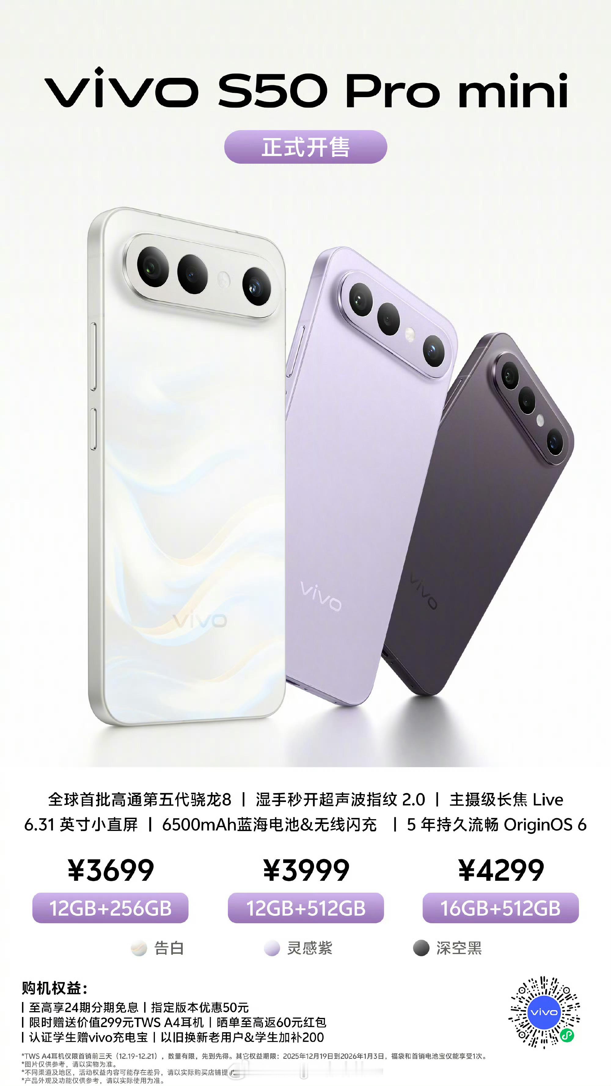 vivo S50vivos50系列的颜值和配置。你们觉得怎么样。超声波指纹,6500mAh的大电池。中端机的配置拉满了。vivo