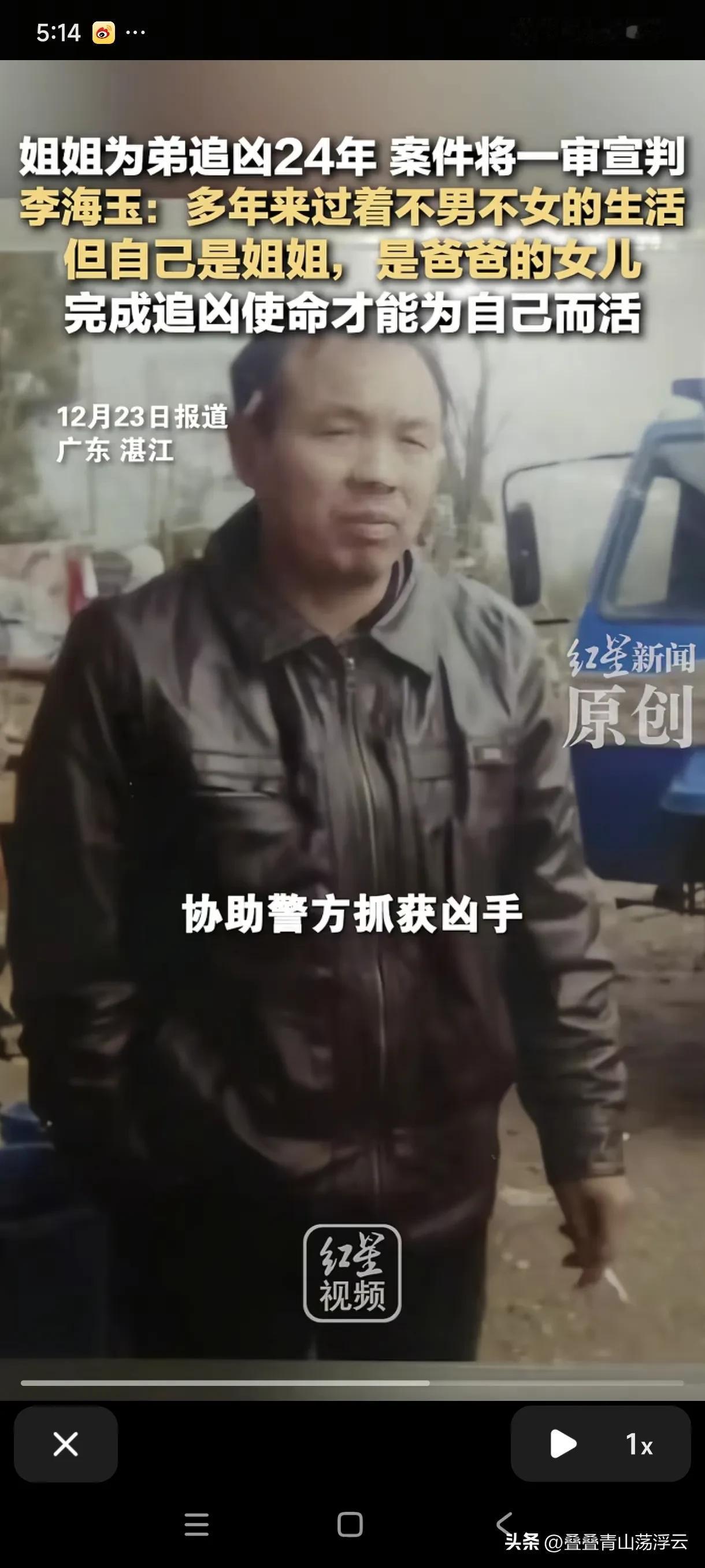 世界上最伟大的姐姐! 湖南省邵阳李海玉,为弟弟“孤胆追凶”近30年,终于将凶手抓出并且近日在广东省湛江市中级人民法院第四次审判,终于为90年代在湛江不幸遇害的弟弟讨得正义! 为了追查凶手,作为姐姐的李海玉,毅然决然剃了光头,只要没抓住凶手没让凶手绳之以法,就一日不留长发,也不婚不嫁(为弟弟追凶已经离婚,儿子12岁就放在亲戚家寄养),田产被邻居霸占,即使在追凶路上被骗被卖也在所不辞。 这么伟大的姐姐,这么感动中国人的事迹,如果这事拍成电影,我想也没有哪个女演员能够演得出来。 56岁的李海玉,她从18岁满头青丝追凶到如今满头白发,为这位伟大的姐姐的三十年如一日的坚持,以及置死地而后生的勇气,为她迟来的正义而点赞![赞][赞][赞]李海玉 如何看待姐姐李海玉为弟追凶26年