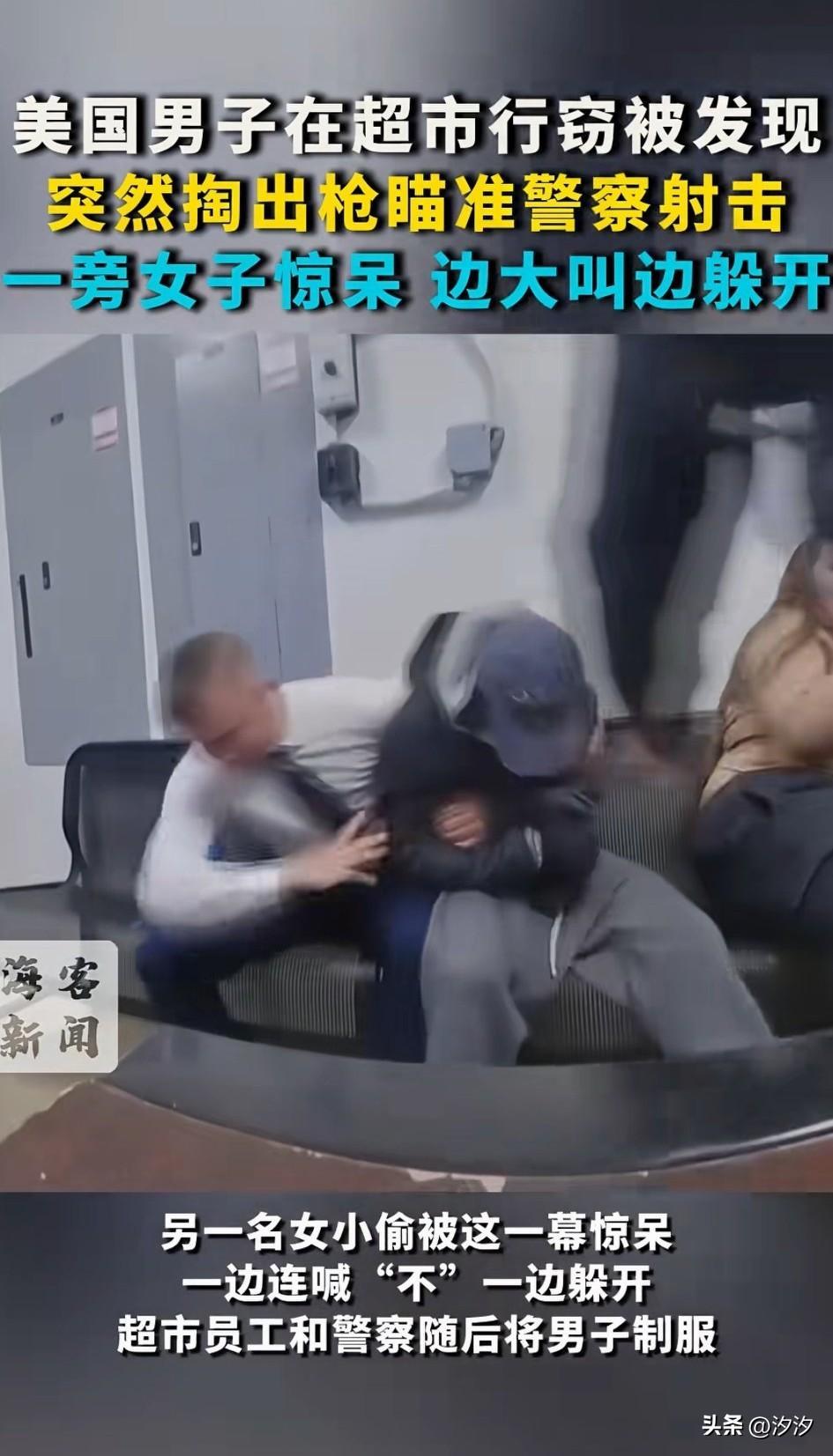 美国俄亥俄州两名小偷在超市偷窃被抓,他们被带到了员工的办公室, 坐在旁边的沙发上, 超市已经报警, 警察也很快赶到了现场, 就在小偷看到警察之后, 一名男小偷突然将口袋里的枪, 掏出来对着警察, 这可把旁边的女小偷吓坏了, 连忙躲开并大喊不要, 超市工作人员干活迅速和小偷扭打在一起,警察也迅速上前帮忙, 最终合力制服了小偷, 这就是自由的美利坚, 一言不合就拔枪, 怪不得当地的警察都很紧张, 因为对方可真的会开枪, 美国警察的伤亡率也很高, 这就造成了他们看见危险动作就会清空弹夹,毕竟是比谁快, 可以说每一位美国警察, 每年射出的子弹都很多, 大家对于自由美利坚这事怎么看? 小偷 国外超市小偷 外籍小偷 美国盗窃案 美国入室抢劫 国外小偷 沃尔玛店内盗窃