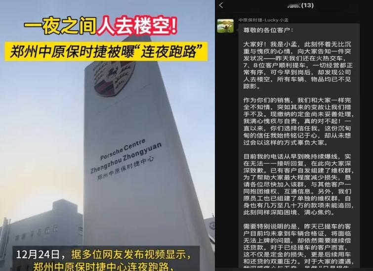 突发!保时捷中国道歉,警方已介入!(郑州中原保时捷店跑路)郑州中原保时捷中心疑连