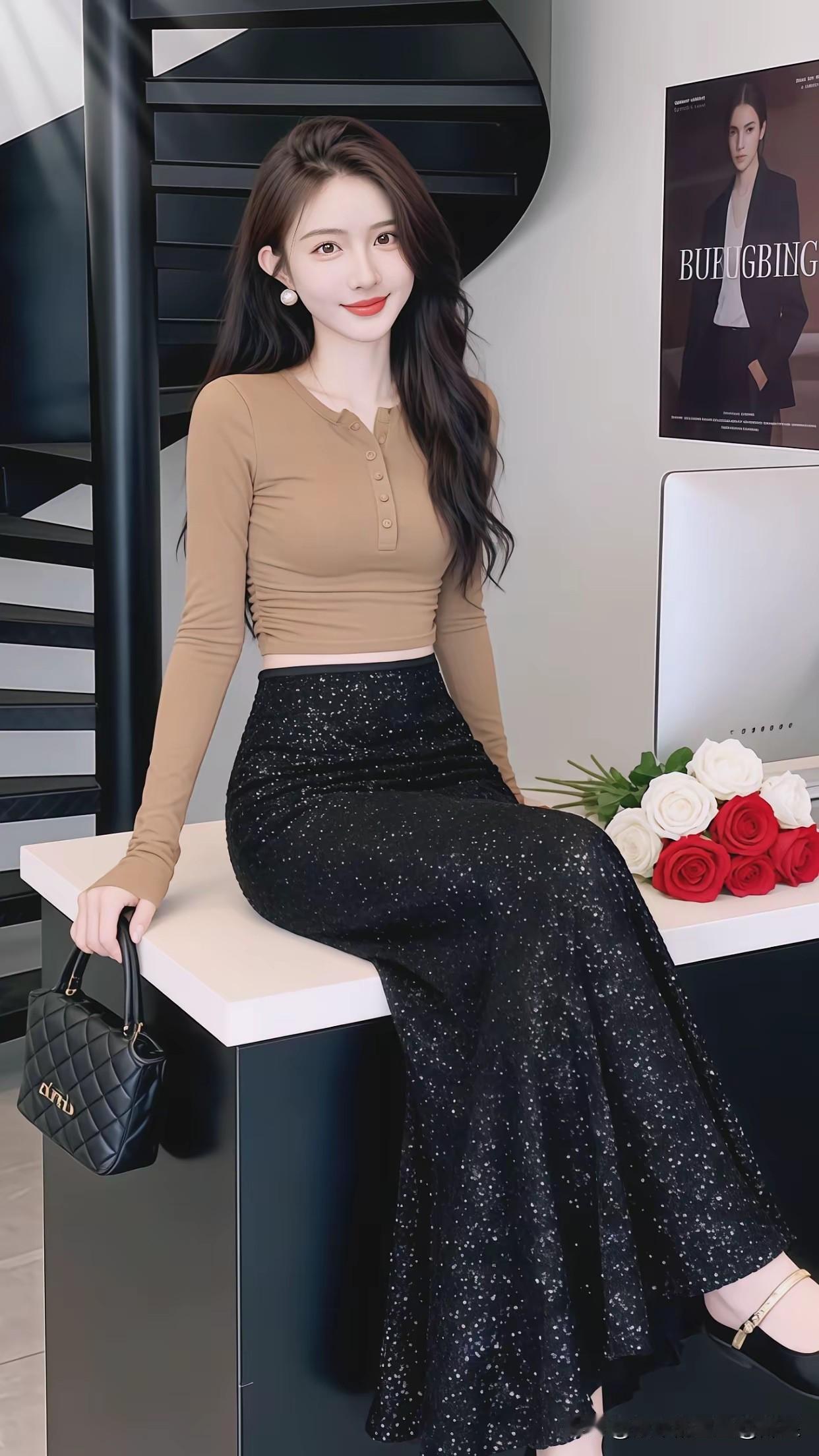 这套穿搭是优雅性感的黑红撞色轻礼服风,简约中带着高级张力。黑色一字肩长裙自带优雅