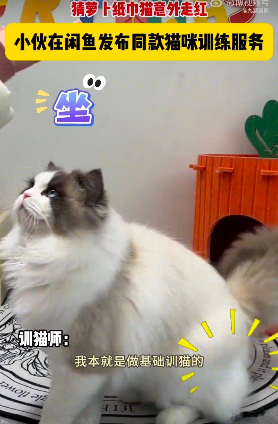男子闲鱼挂萝卜纸巾猫训练服务 一段爆火全网的猫咪训练视频,让“萝卜纸巾猫训练服务