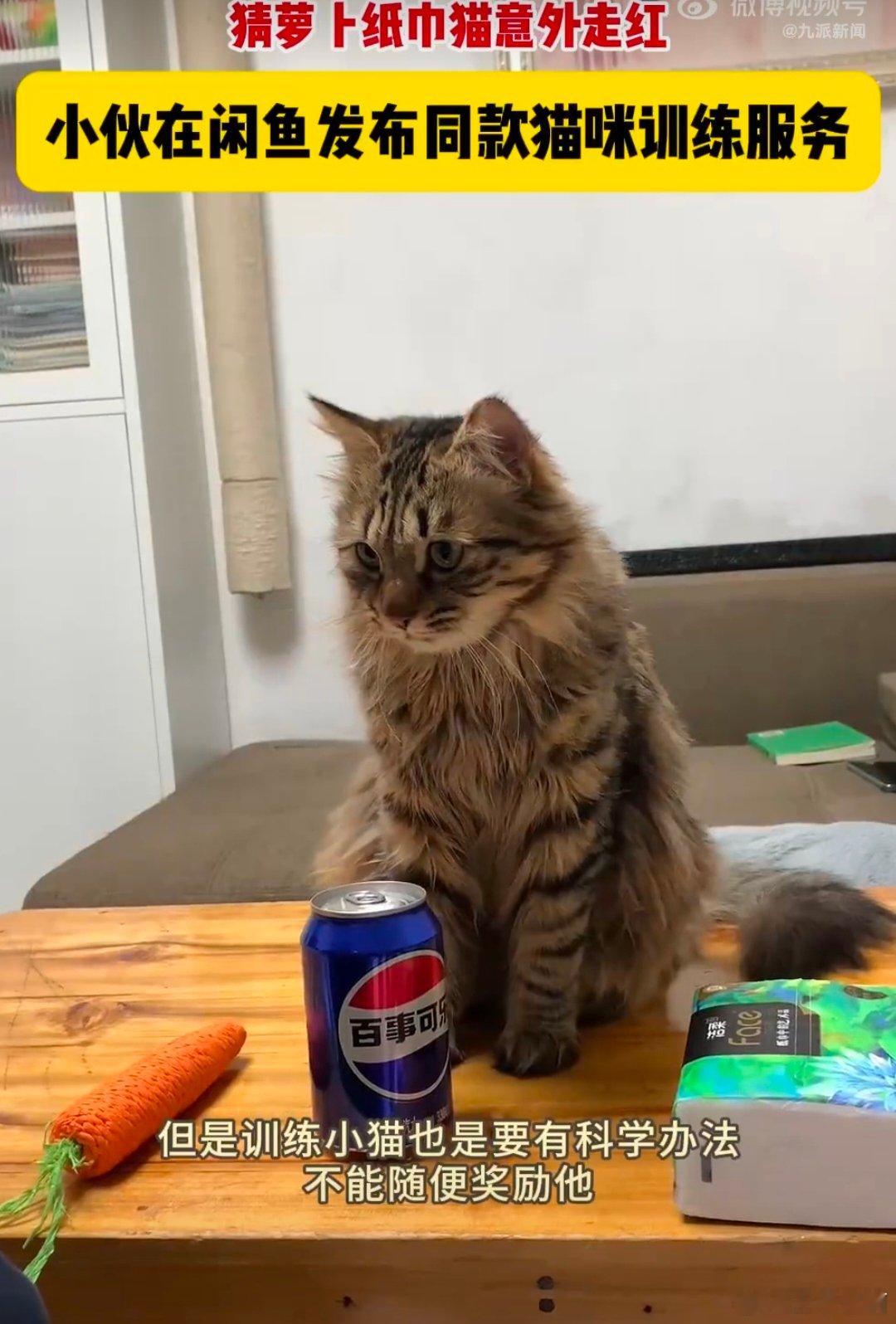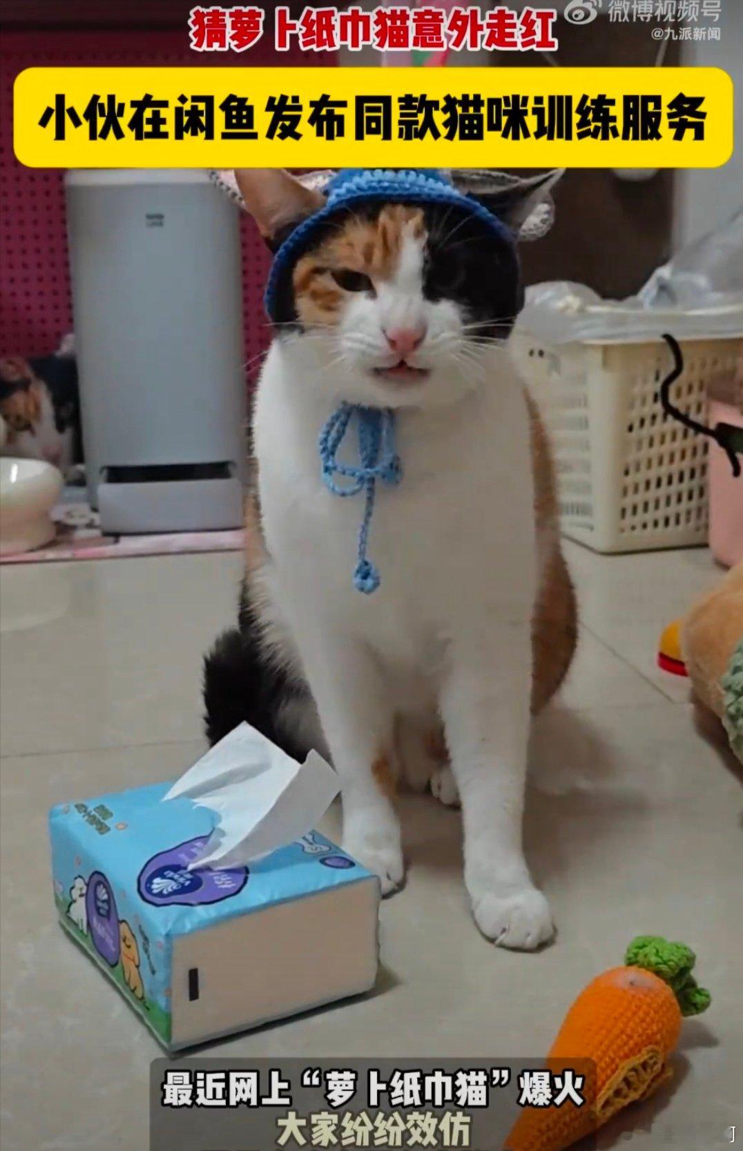 男子闲鱼挂萝卜纸巾猫训练服务 一段爆火全网的猫咪训练视频,让“萝卜纸巾猫训练服务”成了闲鱼新宠,真有人下单,你觉得值不值?