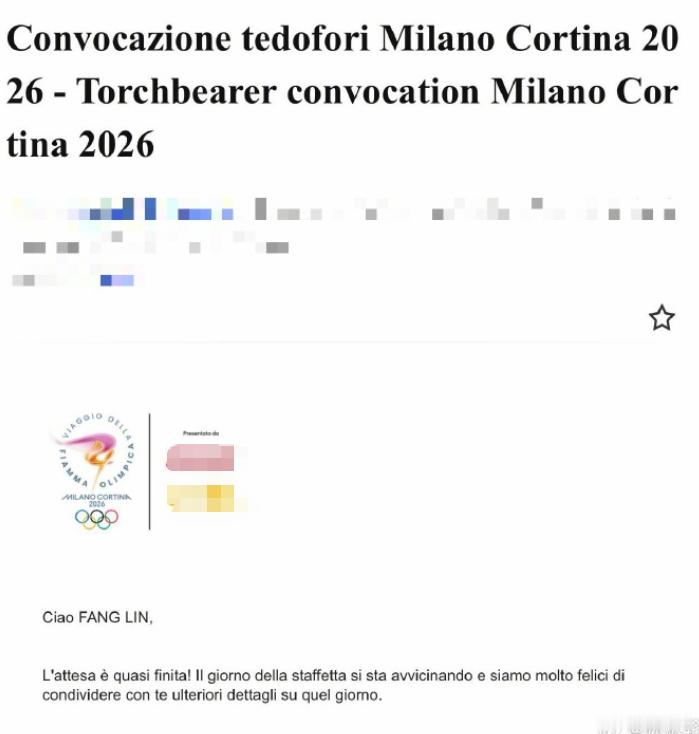 林依轮将担任米兰冬奥会火炬手 林依轮发文透露将担任米兰冬奥会火炬手:“今天收到了