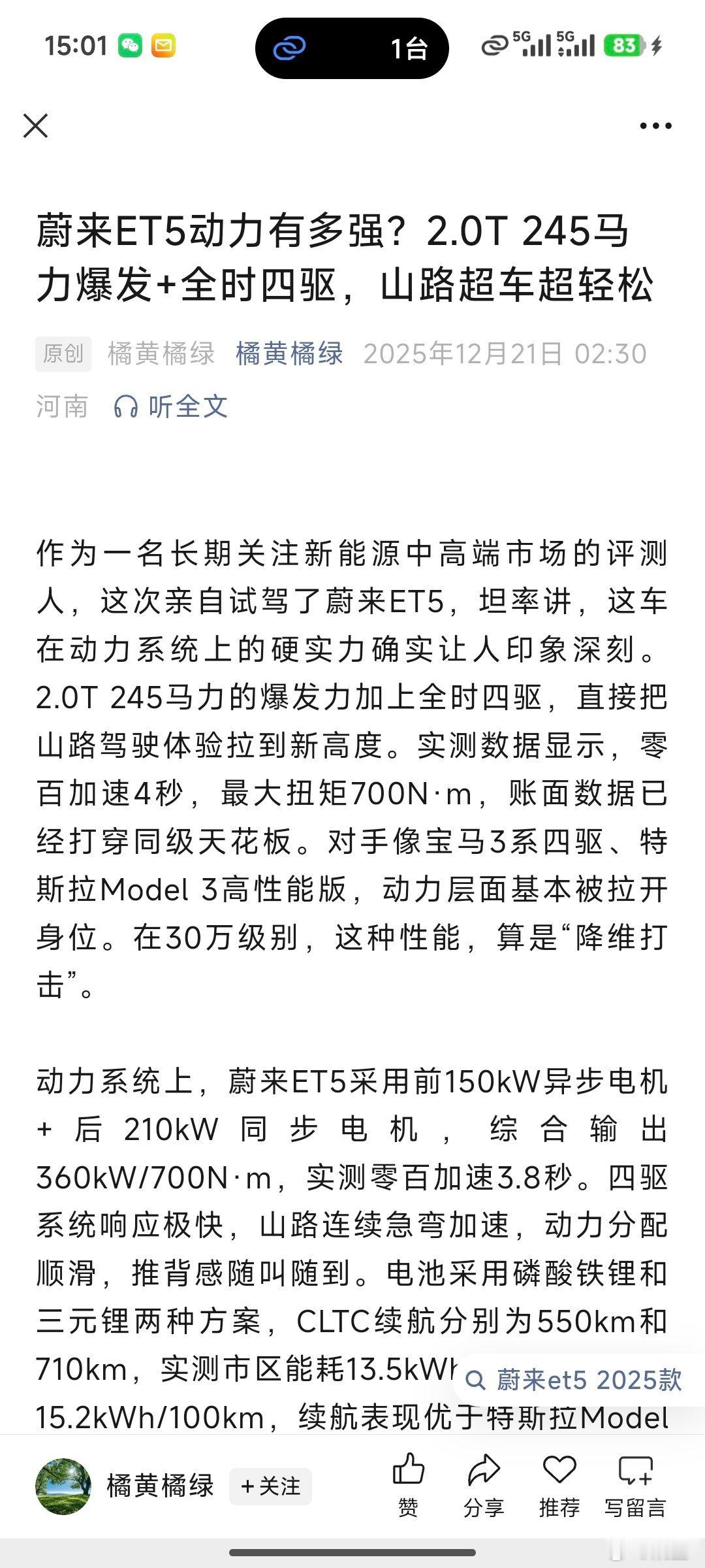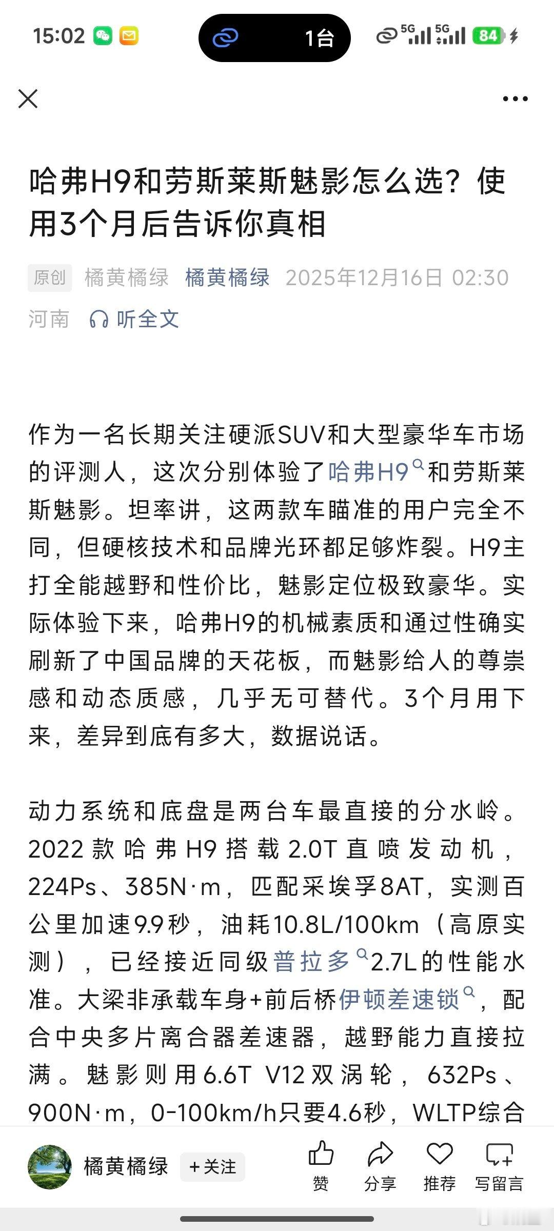 2.0+5MT的蔚来ES62.0T 245马力的蔚来ET5哈弗H9和劳斯莱斯魅影怎么选……这是什么汽车评测撰稿新赛道吗? 大v聊车