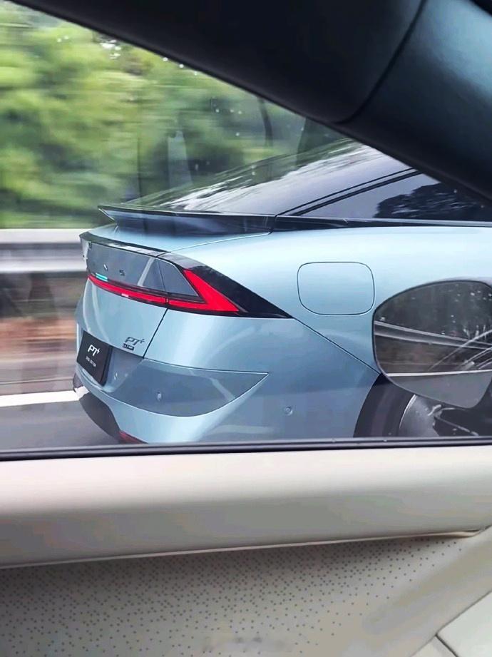 厉害的网友发来疑似小鹏P7+增程版实车路试中,这新车尾一眼不同了。