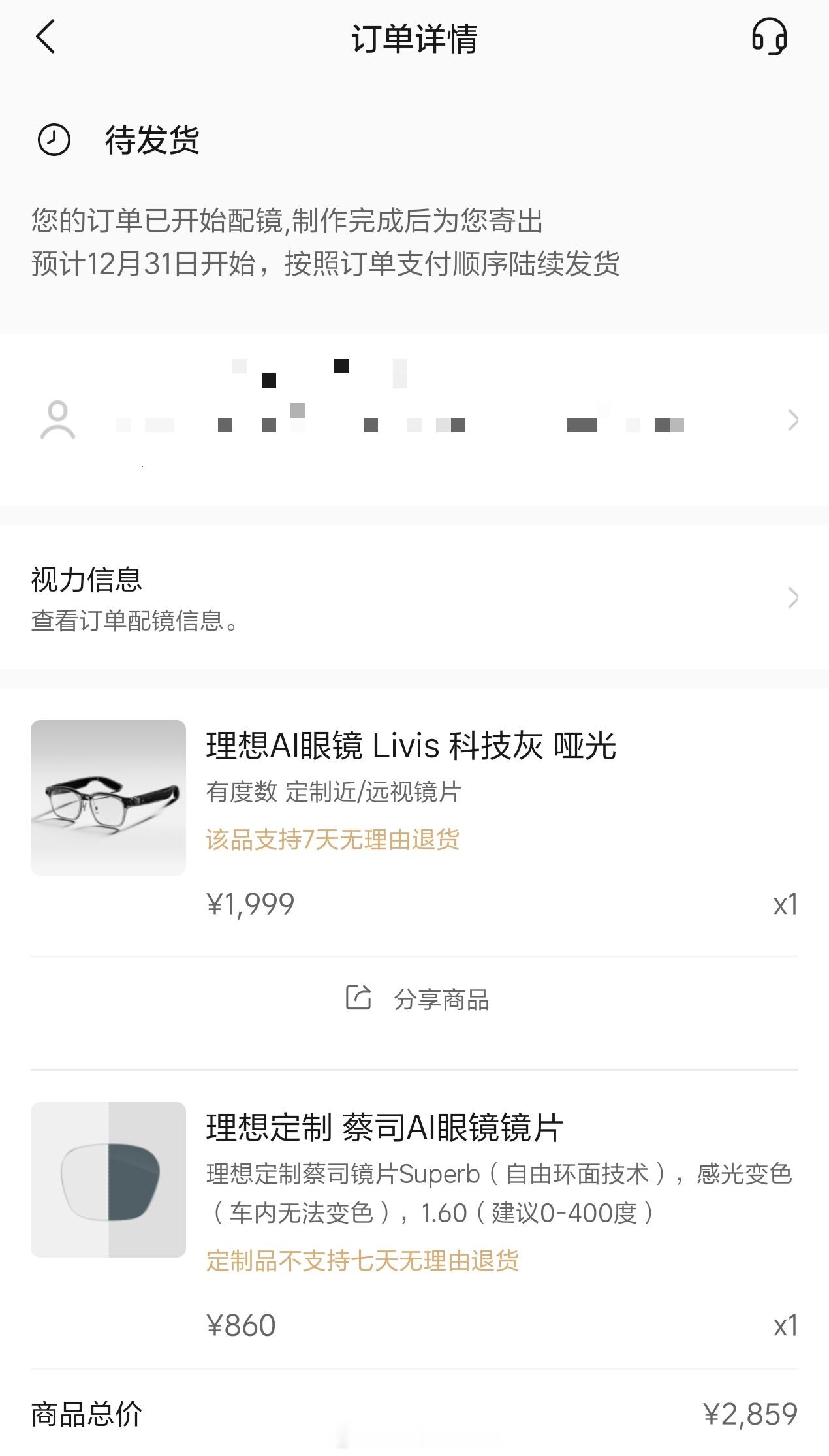 行吧,我的理想眼镜延期 2026 年 2 月 26 日前发货了客服跟我说收货后会补偿 3000 积分。延期原因是销售火爆,工厂产能跟不上所导致的。看来当晚抢到的订单,第二天才去线下验光,再上传验光单还是晚了一步。话说现在接到客服来电,我都习惯性打开 ColorOS 的 AI 通话摘要了,文字摘录总结还挺有条理的。我刚接电话的时候只对 3000 积分补偿有印象,脑子里忽略了「收到货后三个工作日内」这句话了,回看摘要才明晰。