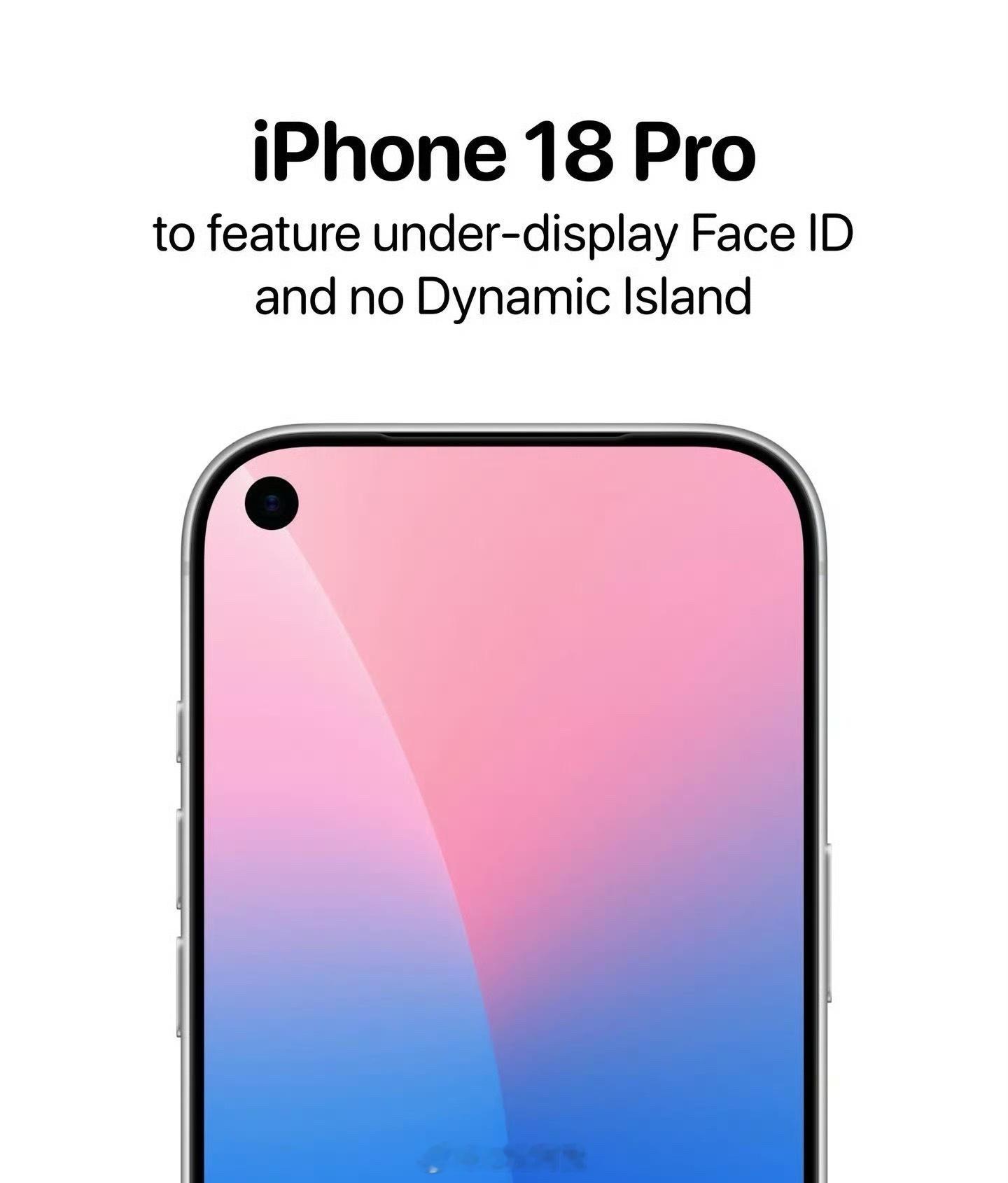iPhone18Pro左上角挖孔设计取消灵动岛左上角挖孔设计感觉不太可能啊哪怕灵动岛小了 我觉得应该也是屏幕集中挖孔