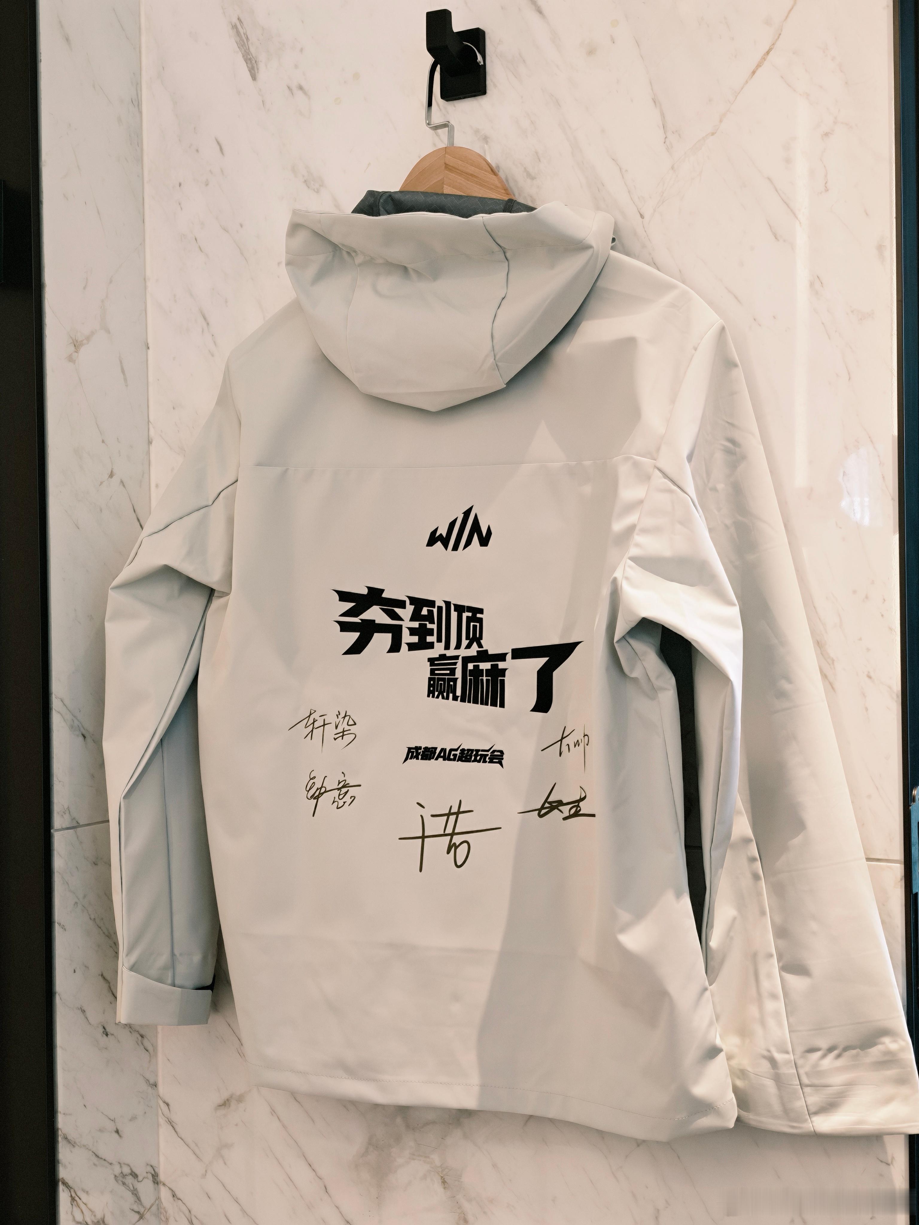 KPL到荣耀WIN发布会的酒店了,伴手礼是成都AG超玩会的签名冲锋衣,很是夯,期