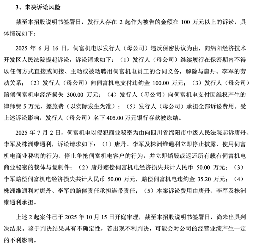 此外,截至招股书签署日,公司还存在2起作为被告的金额在100万元以上的诉讼,虽然目前尚未对公司经营产生重大影响,但也为其未来的经营稳定性增添了不确定因素。