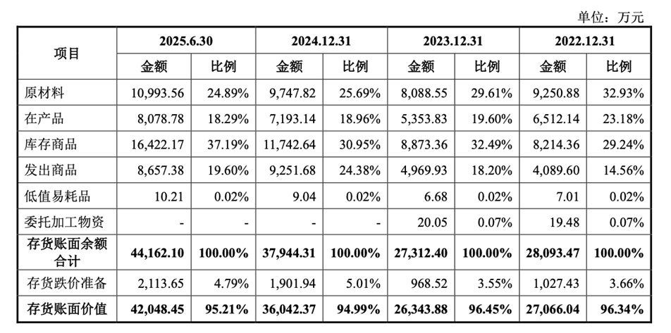 除了应收账款高企,存货压力也不容忽视。2024年末,公司存货余额为3.6亿元,占总资产的15.29%,应收账款与存货合计占比超55%,意味着公司超过一半的资产是流动性较差的应收与存货资产。