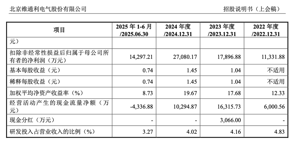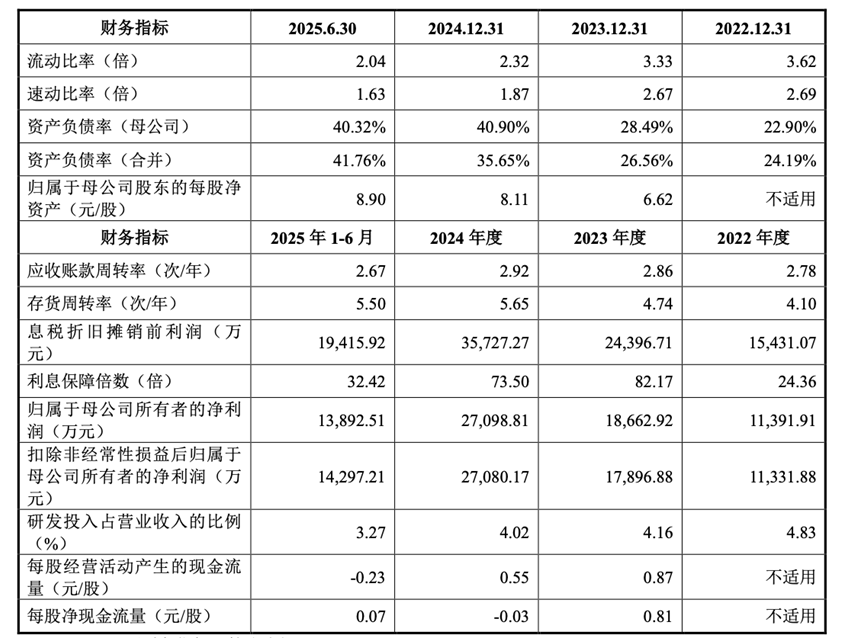 从资本动作来看,除了IPO募资,维通利在报告期内的筹资活动主要依赖债务融资与股权融资。2022年至2024年,公司筹资活动现金流净额分别为-5421.81万元、6929.62万元、2562.48万元,2025年上半年筹资活动现金流净额大幅增至2.52亿元,主要系新增银行借款所致。