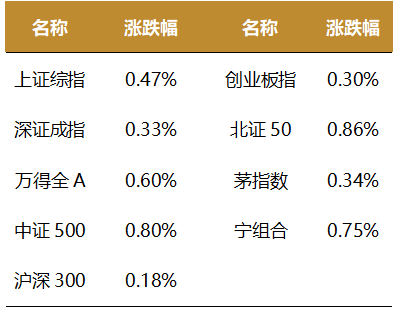 截至收盘,今日上证指数收于3959.62点,上涨0.47%,成交额为0.79万亿元;深证成指上涨0.33%,成交额为1.14万亿元;创业板指上涨0.30%。今日两市上涨个股数量为3768只,下跌个股数为1469只。