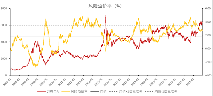 (注:数据更新至前一交易日,风险溢价率越大,表明配置股票的性价比越高;反之,则配置债券的性价比越高)