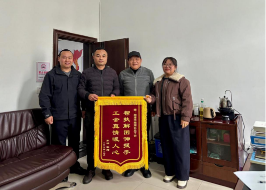 雨湖融媒12月25日讯(通讯员朱瑛慧)一面锦旗,承载着一段温情故事,更凝聚着工会组织作为职工"娘家人"的深厚情谊。近日,姜畲镇工会联合会联合受助职工家庭,共同向上级总工会赠送锦旗以表诚挚谢忱。这面锦旗的背后,是工会组织以精准帮扶为笔、以民生关怀为墨,书写出的暖心篇章。