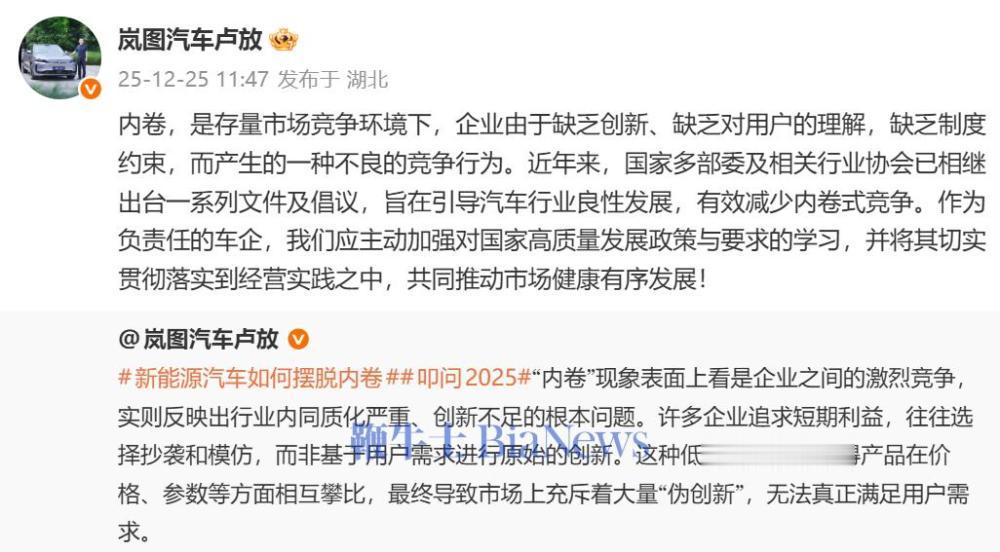 昨日,他发文谈及新能源汽车行业内卷时称,要摆脱内卷,必须回归用户的原点、创新的原点以及经营的原点。(转载自:电车界)