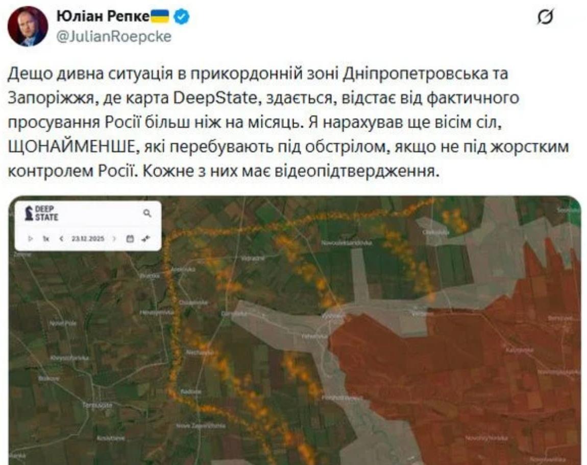 【地图落后于现实,俄军在乌克兰推进得很深】 德国《图片报》的军事分析师朱利安·罗普克表示:现在外界关注俄乌战场的实时变化主要依据乌克兰的公共监测资源地图(DeepState),但根据他的观察,这份实时地图并不实时,它与前线真实情况之间存在重大差异,其中第聂伯罗彼得罗夫斯克和扎波罗热地区的战况就是一个典型案例。 俄乌战场 朱利安·罗普克表示:第聂伯罗彼得罗夫斯克和扎波罗热地区的局势在地图上呈现得非常奇怪,地图上所显示的俄军占领区域比俄军的实际推进足足晚了一个多月。根据他的统计,在这一区域,有8个村庄至少已在俄罗斯控制之下,而且它们也都得到了视频验证,但直到现在,这些也没在地图上呈现出来。因此如果从地图上观察第聂伯罗彼得罗夫斯克和扎波罗热地区局势,恐怕需要谨慎,因为俄军的的推进要远得多。乌东局势 除了这两块区域外,谢韦尔斯克的地图呈现也有很大的问题,乌军已经宣布他们撤出了这座城镇,但该城镇的的西部区域依旧显示由乌军控制,而更早之前,战争研究所(ISW)在一份报告中表示:俄罗斯军队可能在战斗41个月后占领了谢韦尔斯克。谢维尔斯克 朱利安·罗普克表示:地图与现实的差异凸显了一个重大问题,乌克兰面临的局面比想象中更恶化。