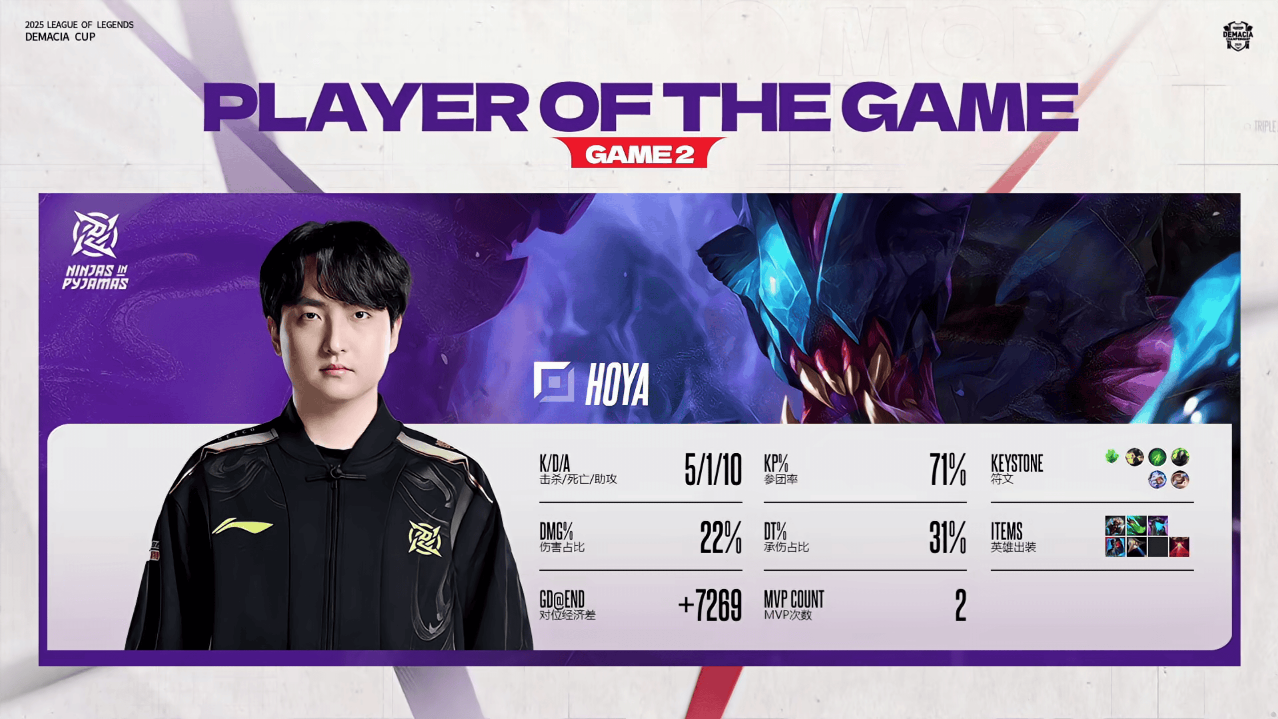 HOYA挖掘机打出5/1/10战绩,拿下NIP对阵IG第二局MVP