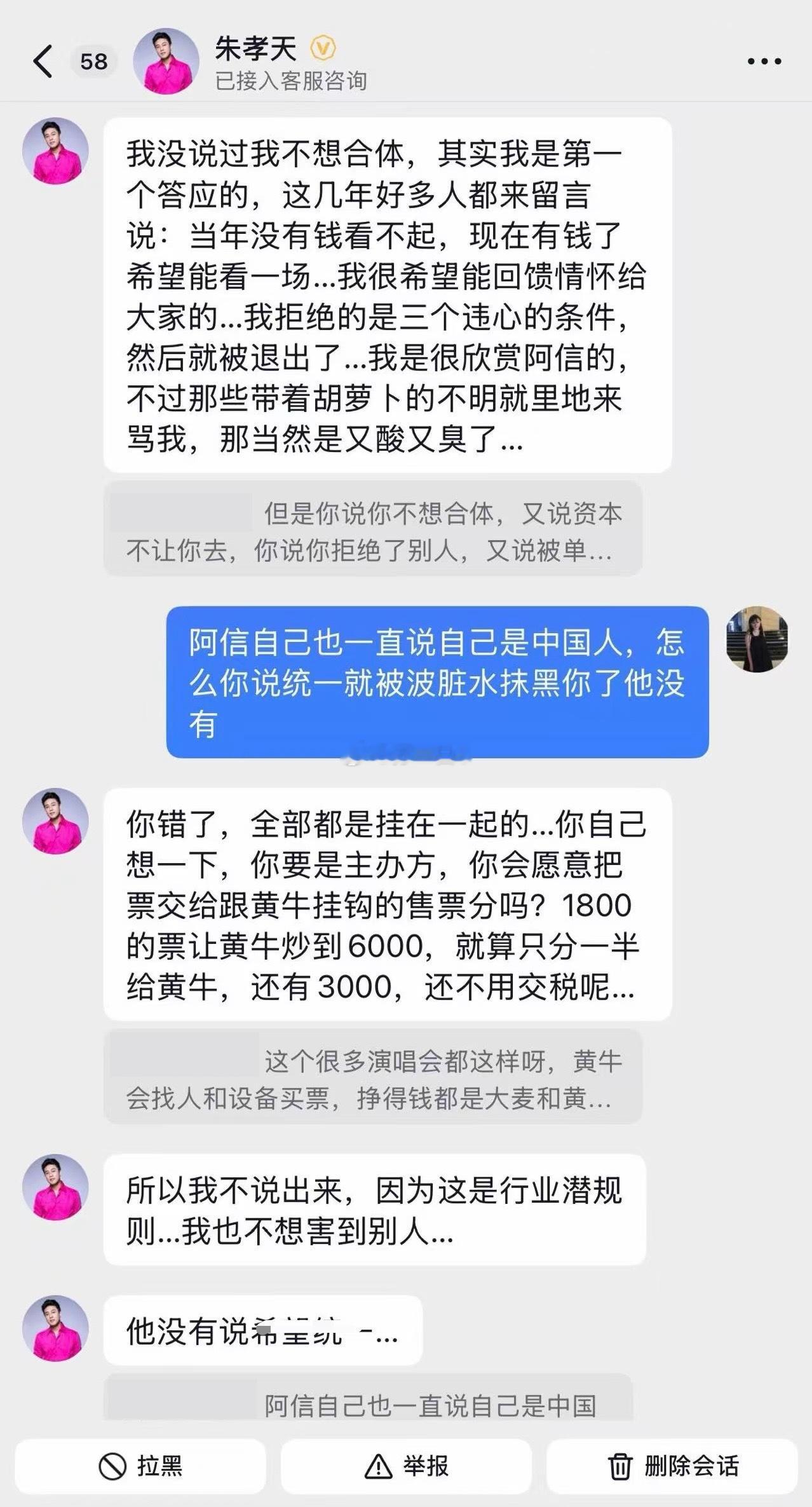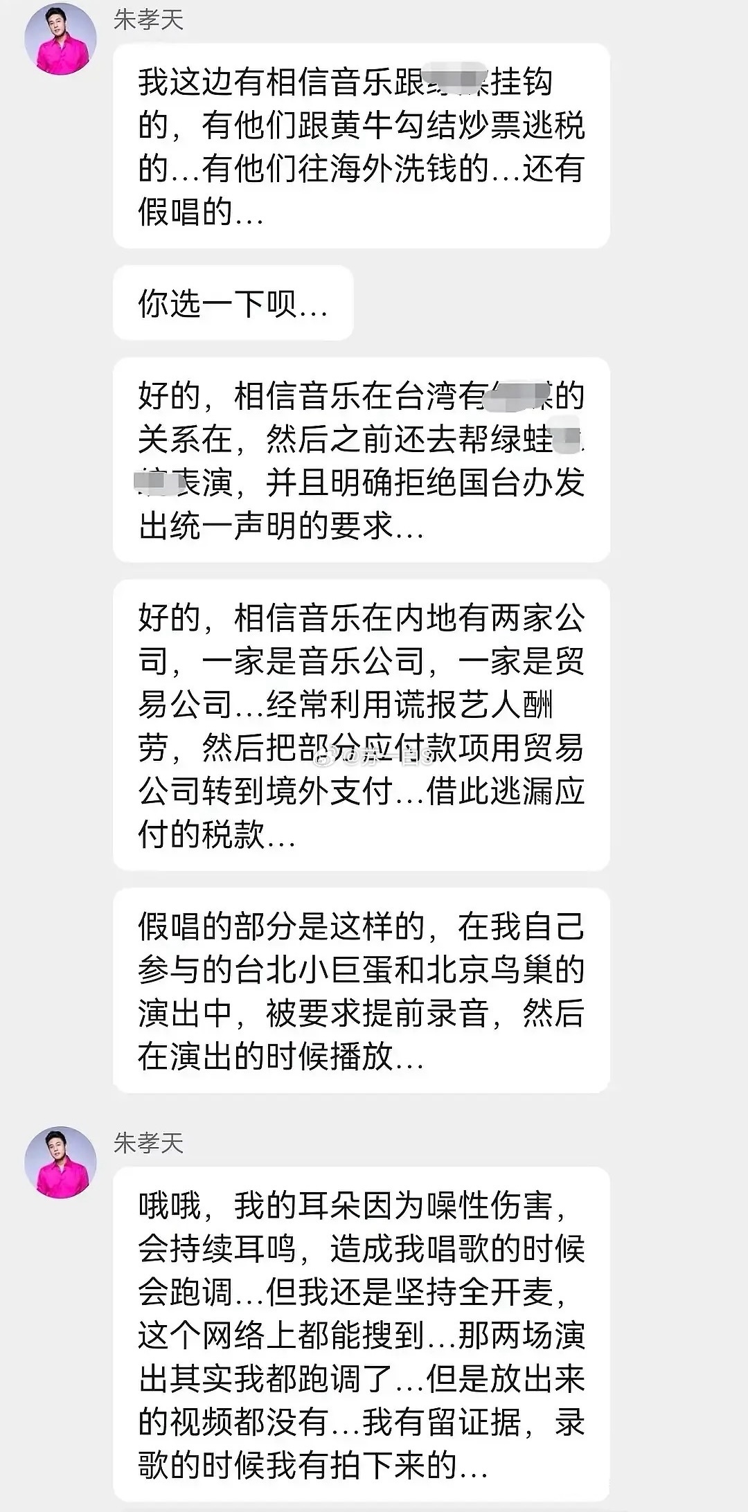 朱孝天:我要掀桌(某音不同网友截出来跟他的私信聊天图|他也太爱回复网友私信了吧)(最后两张不确定图片具体来源)朱孝天举报五月天所属公司朱孝天爆料是维权还是泄愤